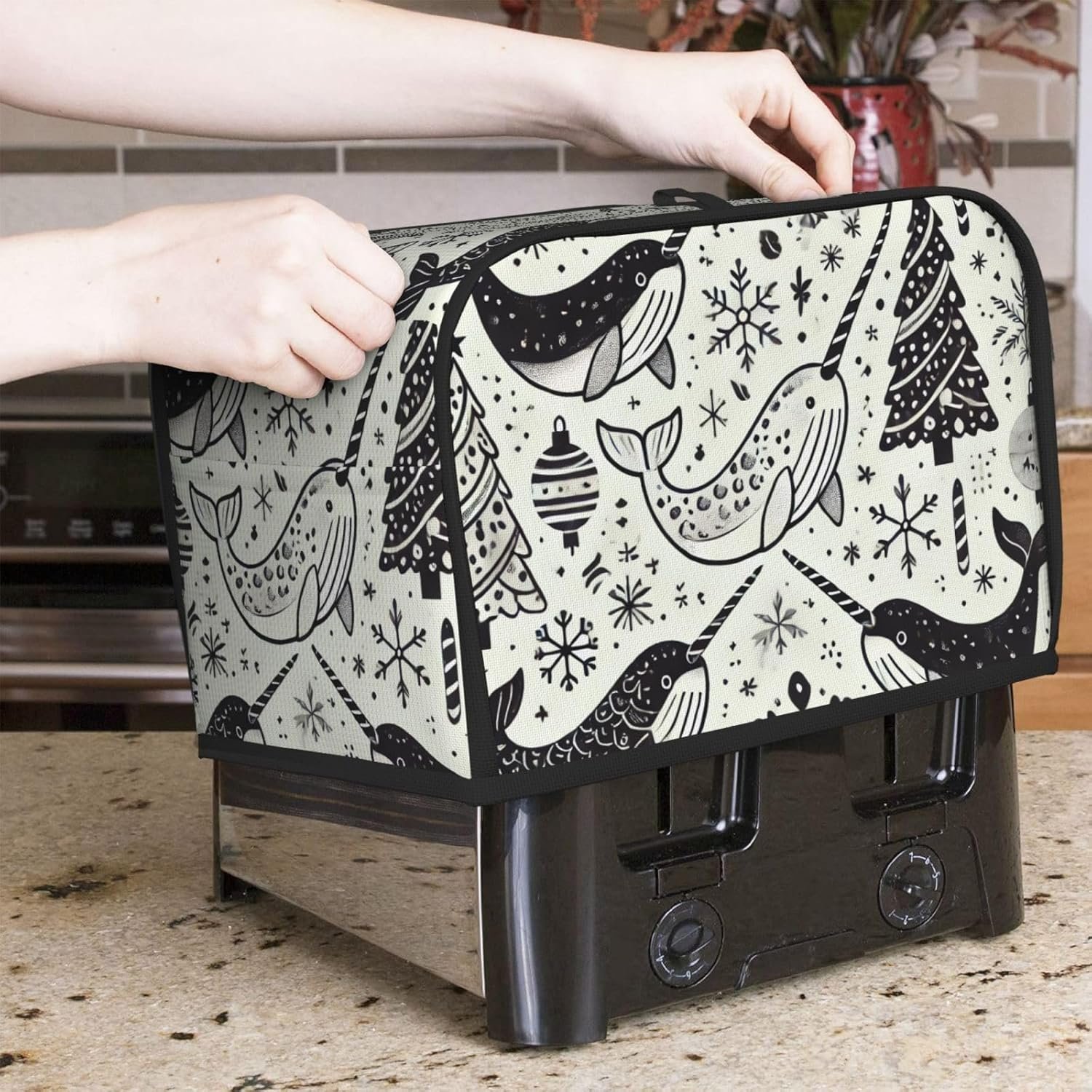 2-Slice Toaster Cover Narwhal Marry Christmas,Polyester Kitchen Appliance Protector