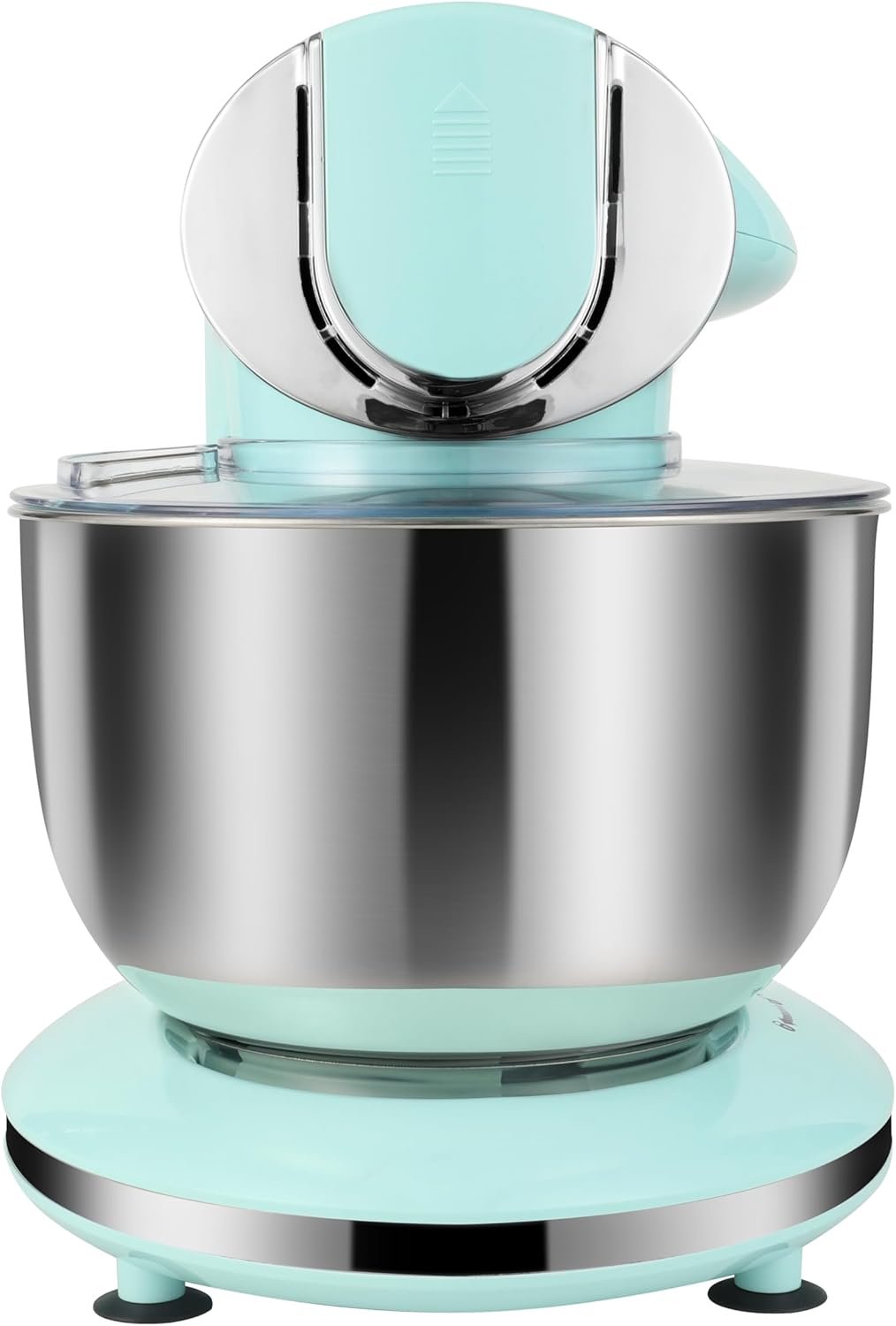 【Tilt-head Design & Over-heating Protection】Electric kitchen stand mixer handle your work all like a charm. Better kneading result. Built-in temperature sensor chip, stand mixer with meat grinder will automatically shut down when overheating, safe to use. Suggest don’t operate it over 9 minutes per time. Anti-slip silicone suction cups keep the machine steady in place while working.