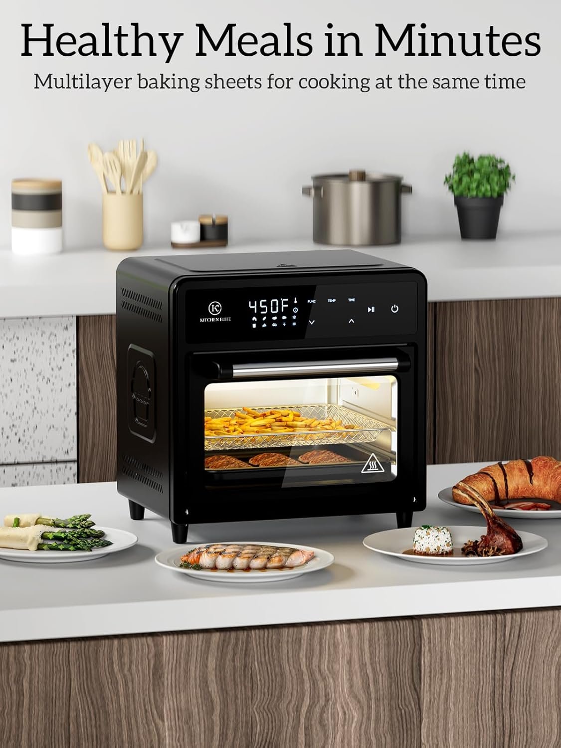High-Performance Cooking: This air fryer toaster oven combo offers not only air frying capabilities but also a variety of oven cooking options such as baking, roasting, broiling, and defrosting, allowing you to easily handle a wide range of dishes.