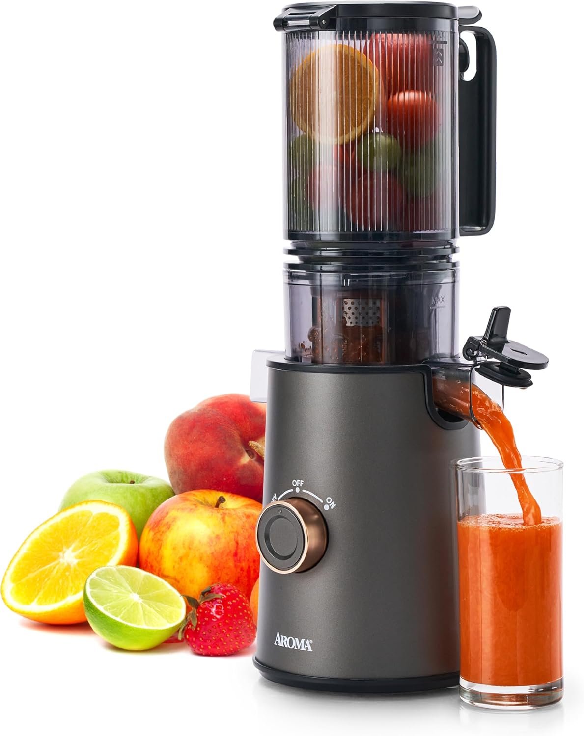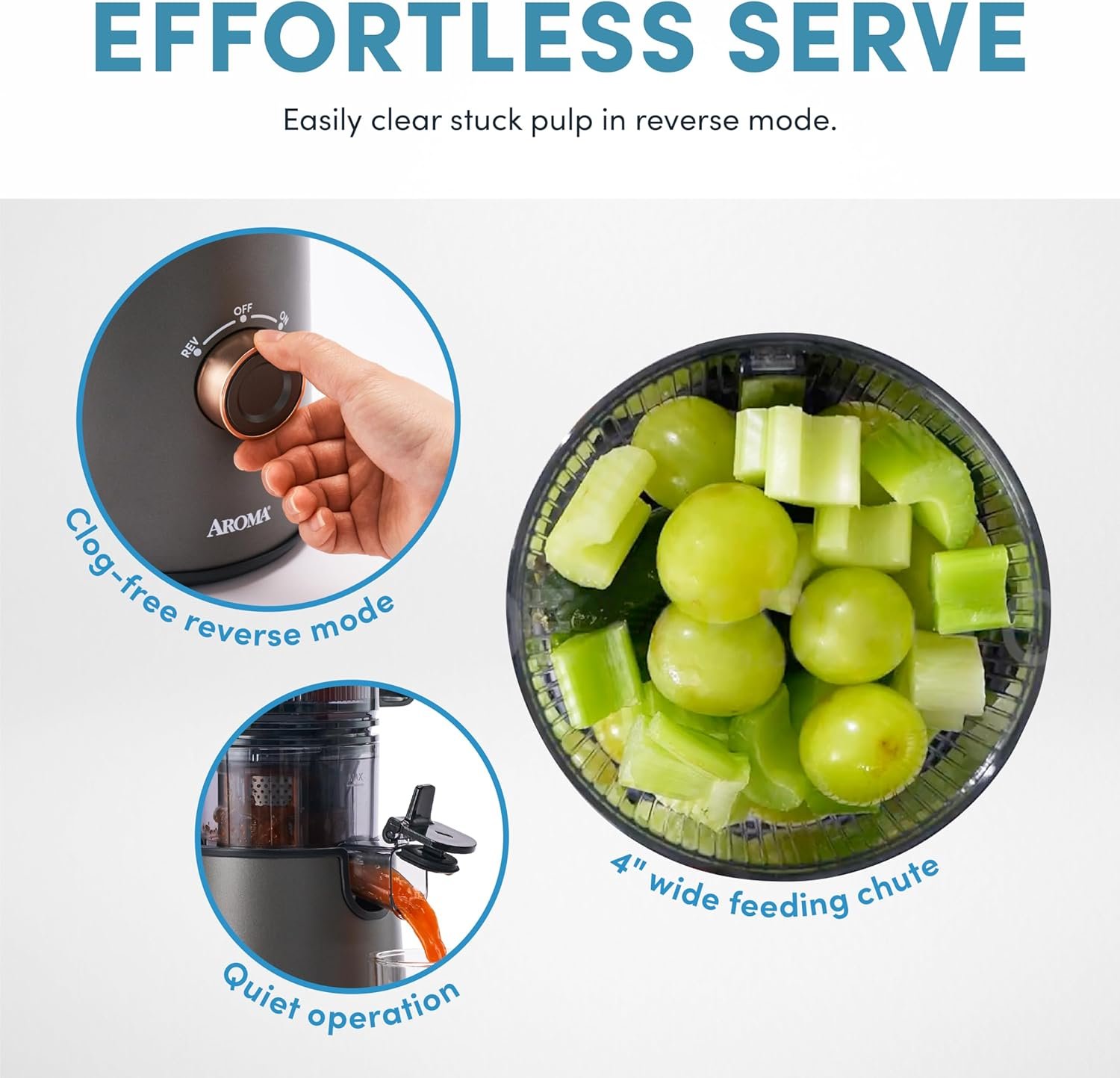 AROMA® Cold Press Juice Machine Slow Masticating Fruit and Vegetable Juicer for Home with Large 4-Inch Feeder and Double Pulp Filter