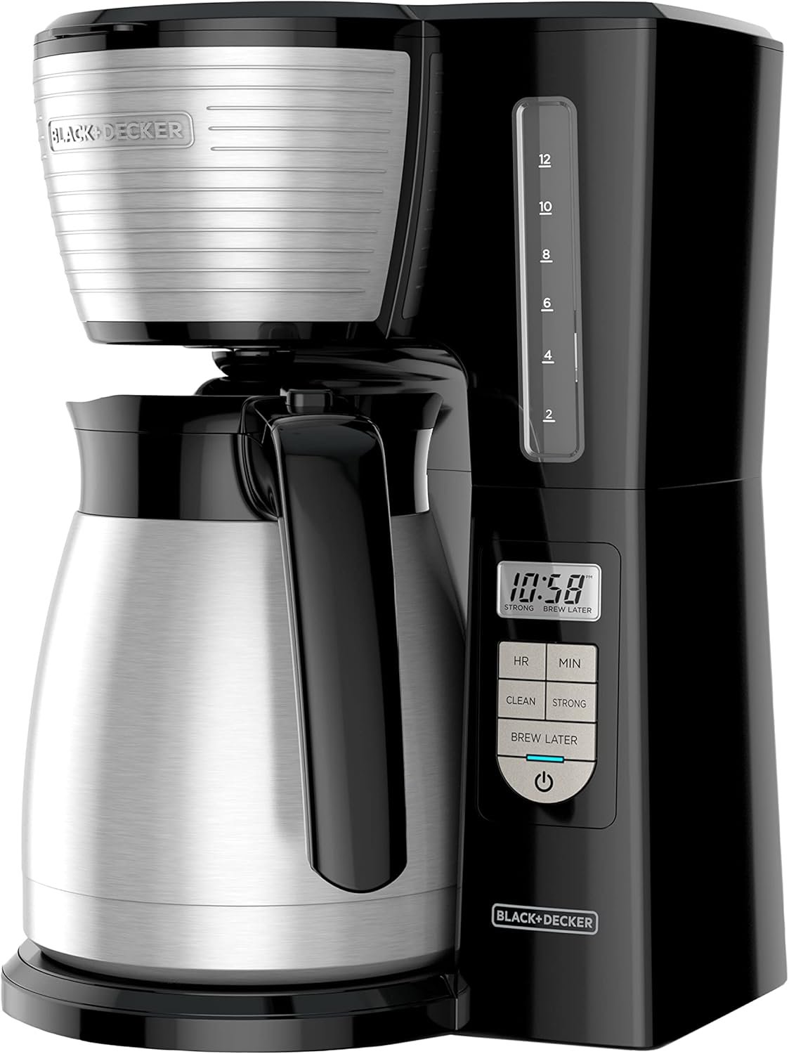 BLACK+DECKER 12-Cup Thermal Programmable Coffee maker, Brew Strength Selector, Auto-clean, Black and Silver