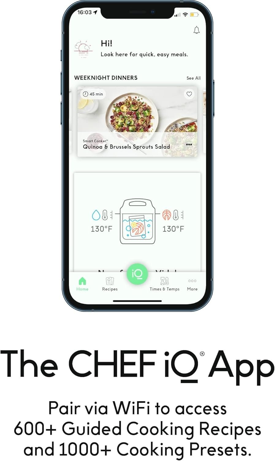THE CHEF iQ APP: Connect your Smart Cooker to the CHEF iQ App via WiFi and Bluetooth. Access 600+ Guided Cooking recipes and culinary how-to videos, control and monitor your Smart Cooker, and access the Cooking Calculator for precise cooking parameters for every ingredient
