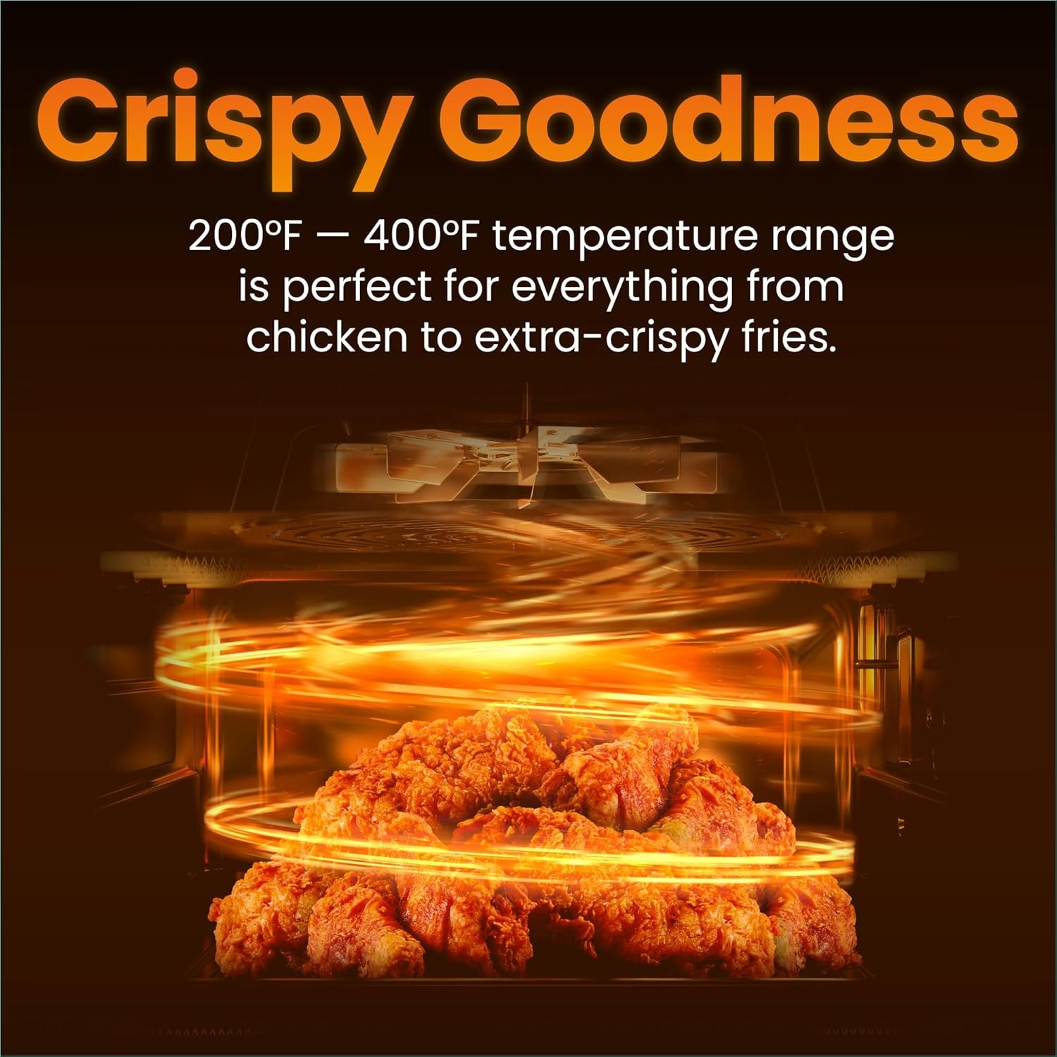 FAST AND EASY: This small air fryer comes prepared for any culinary challenge. The capacitive touch screen display can customize your cooking time and temperature up to a maximum of 400°F! Cook food fast up to three times quicker than an oven.