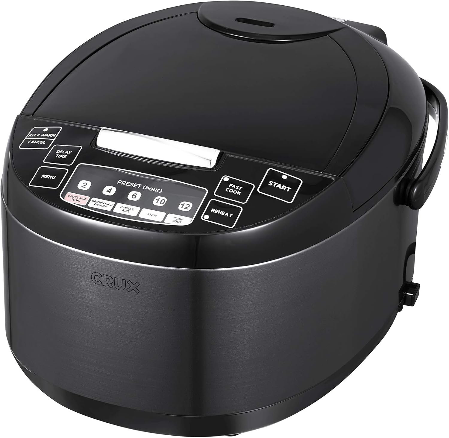 Crux 12 Cup Non-Induction Rice Cooker, Multi-Cooker, Food Steamer, Slow Cooker, Stewpot, Easy One-Pot Healthy Meals, Dishwater Safe, Non-Stick Bowl, Black, one size