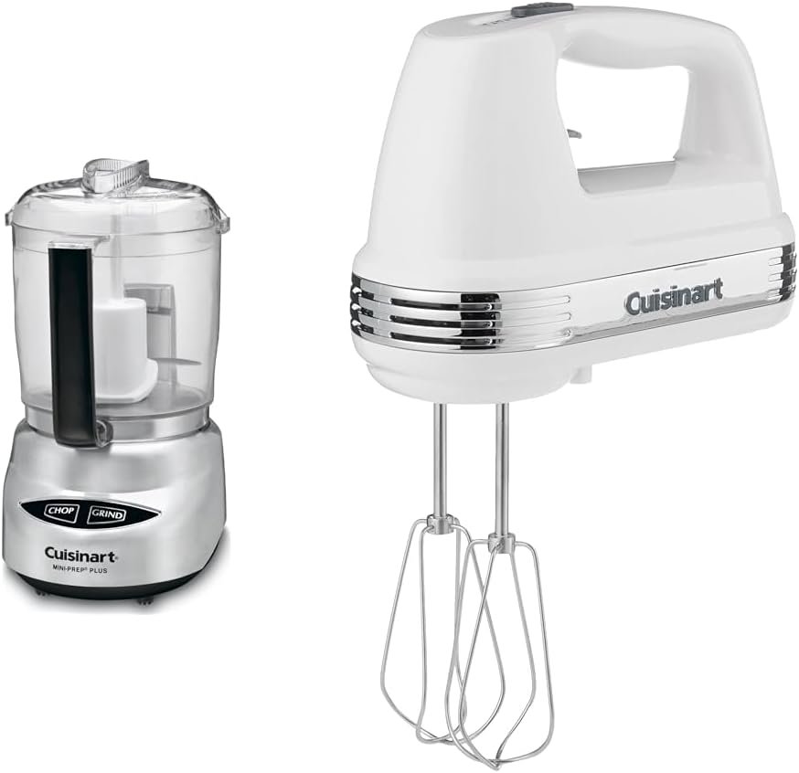 Cuisinart Mini Prep Plus Food Processor, 4 Cup, Brushed Stainless & HM-50 Power Advantage 5-Speed Hand Mixer, White