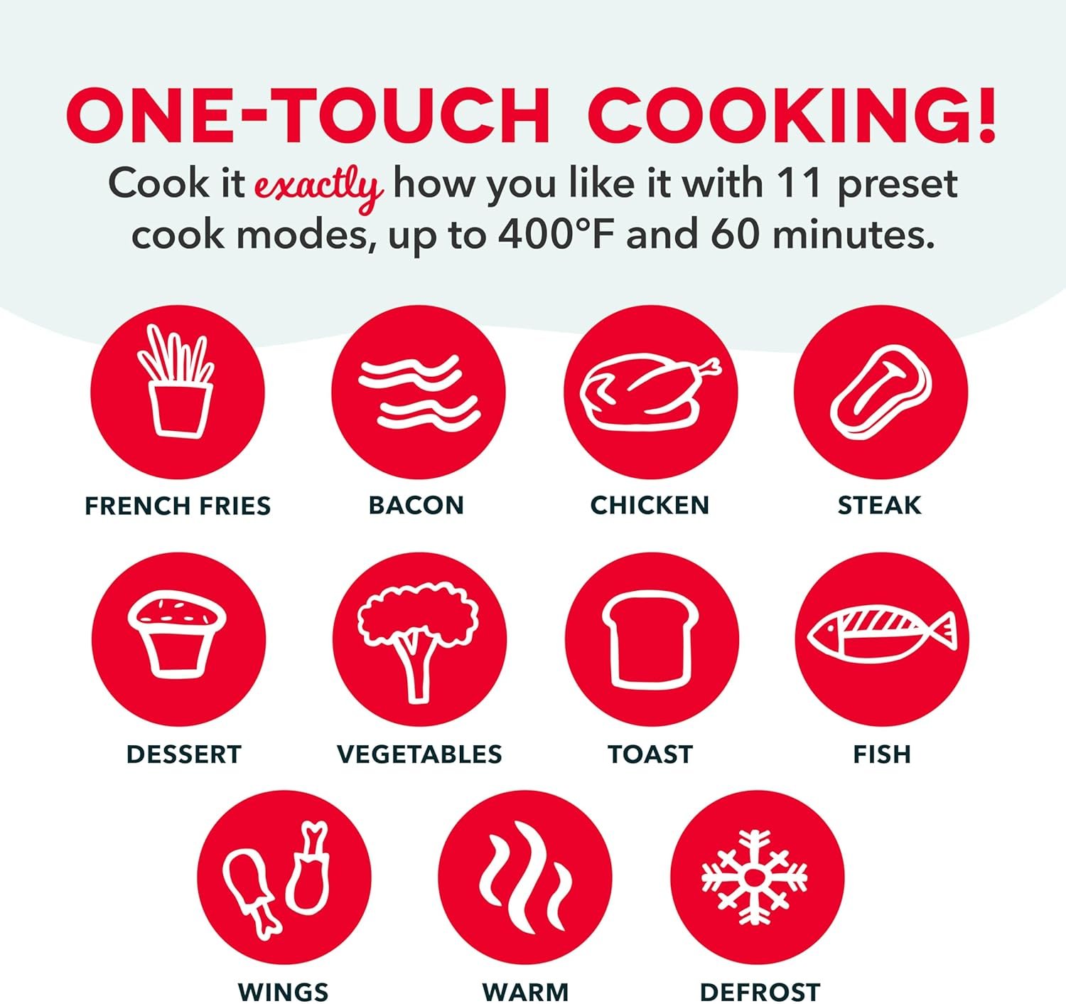 PRESET OPTIONS: Digital Touchscreen with 11 preset cook modes to get cookin’ fast! Shake Reminder Function ensures even cooking and crispiest results!