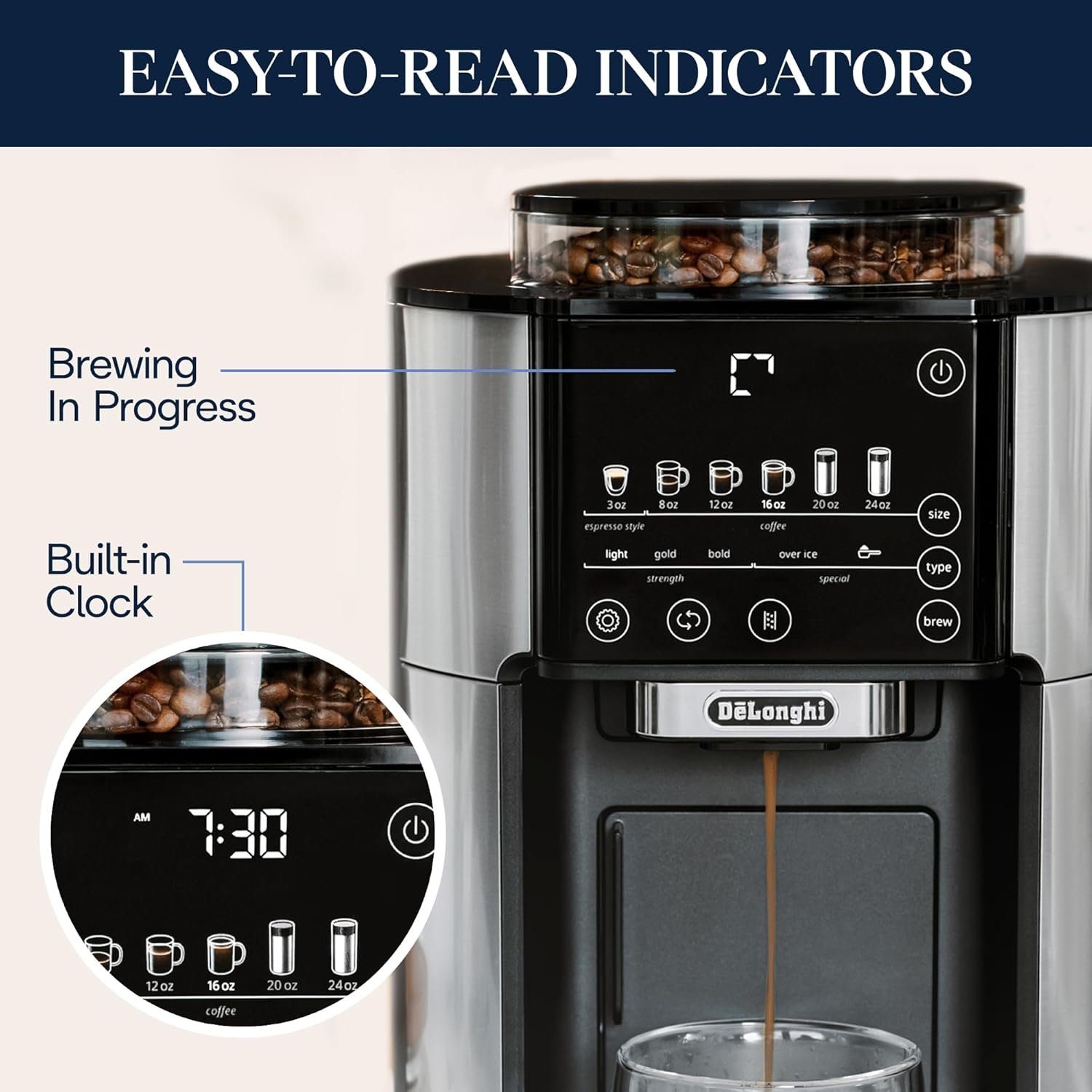 Bean Extract Technology: De’Longhi’s proprietary Bean Extract Technology automatically grinds, doses, and brews each cup to perfection.