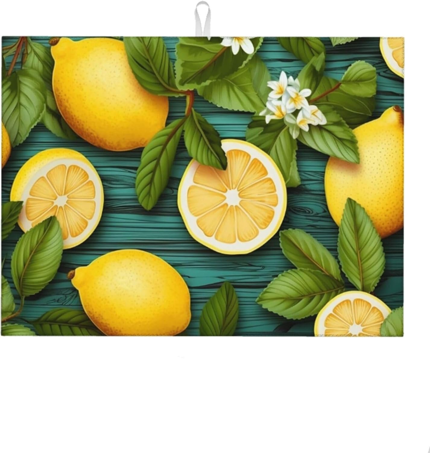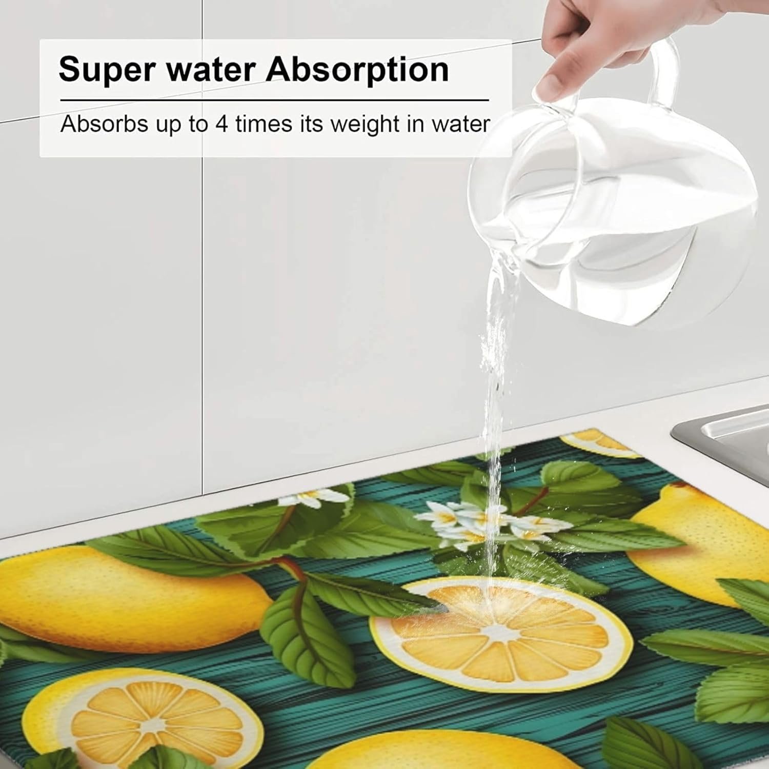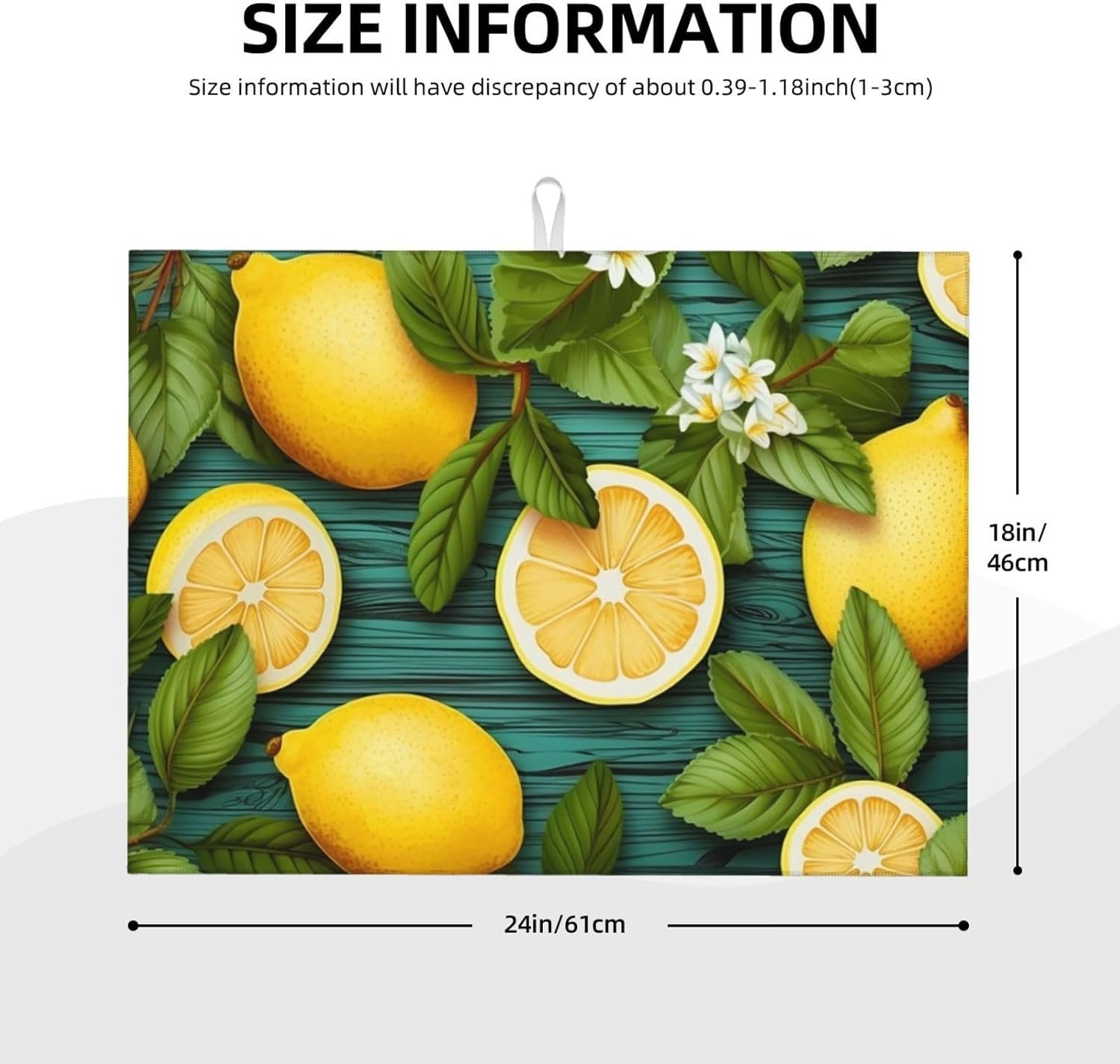 Dish Drying Mat Microfiber Super Absorbent Drying Mat for Kitchen Counter Art Lemon Dish Drying Pad Washable Drainer Mats Countertop Protector Dish Mats for Rack Coffee Maker