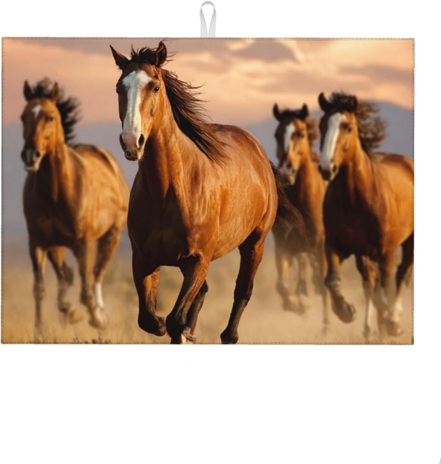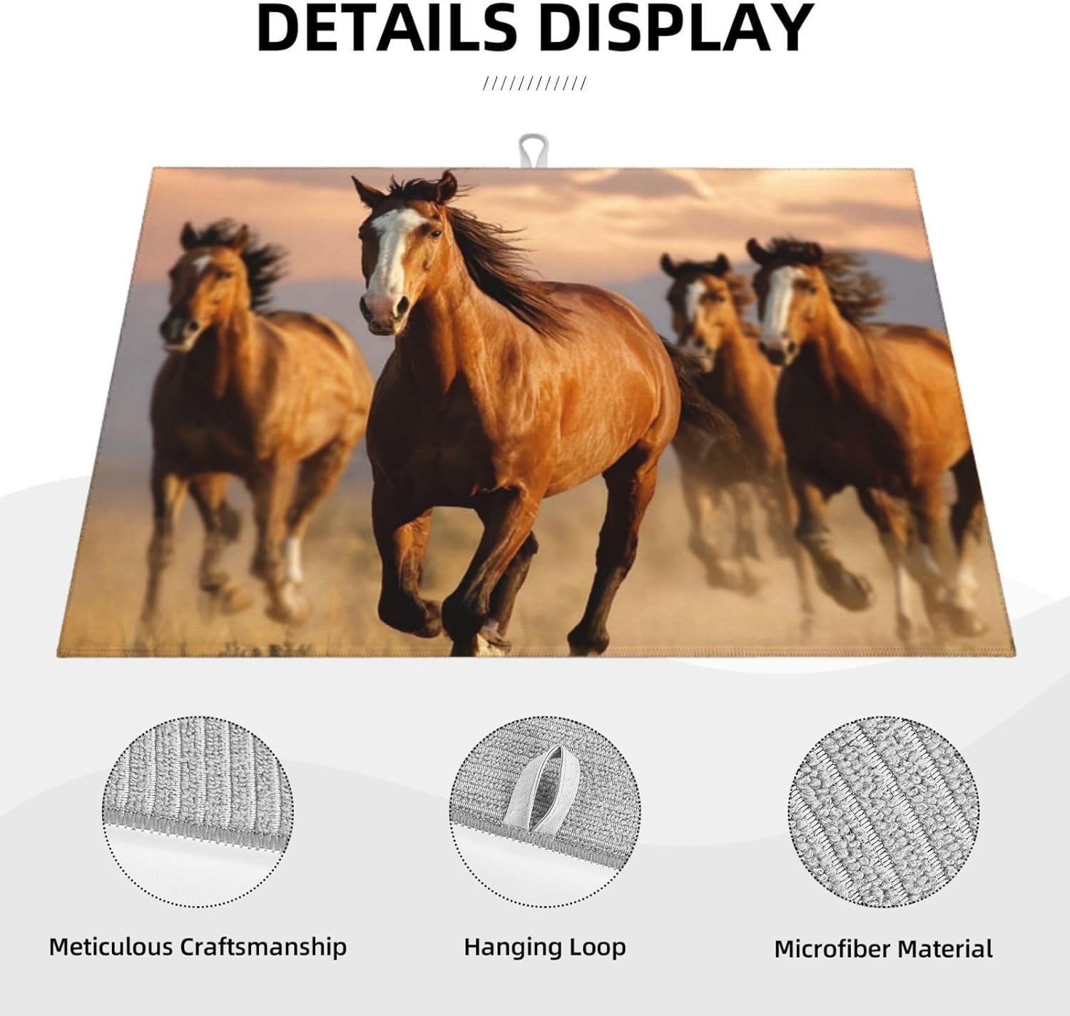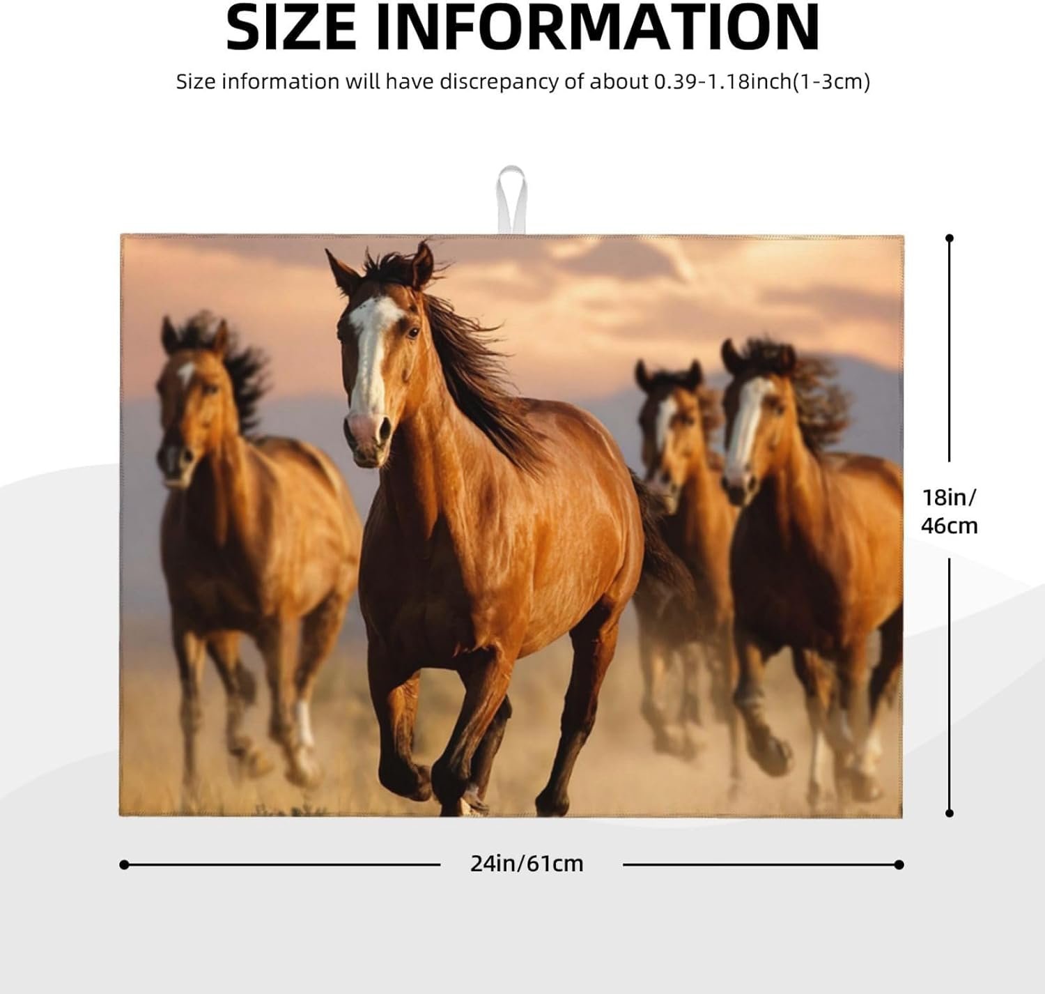 Dish Drying Mat Microfiber Super Absorbent Drying Mat for Kitchen Counter Horses Dish Drying Pad Washable Drainer Mats Countertop Protector Dish Mats for Rack Coffee Maker