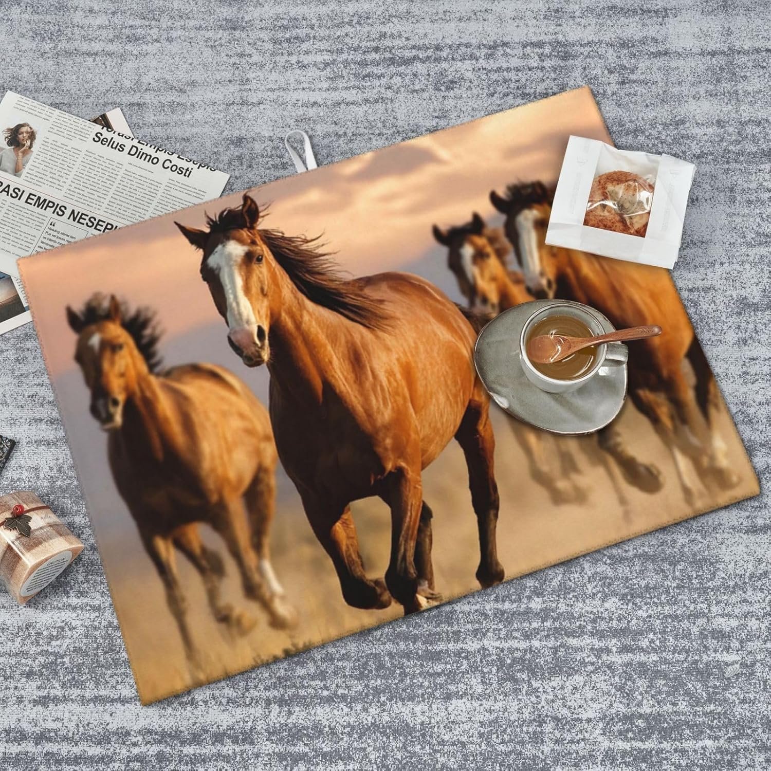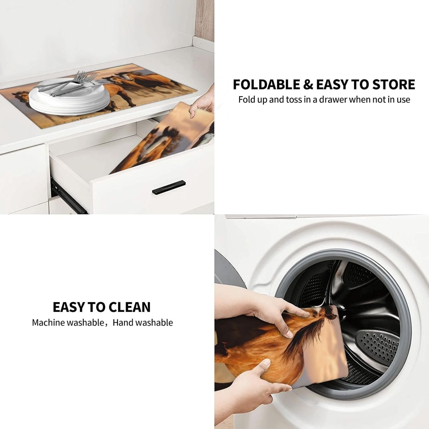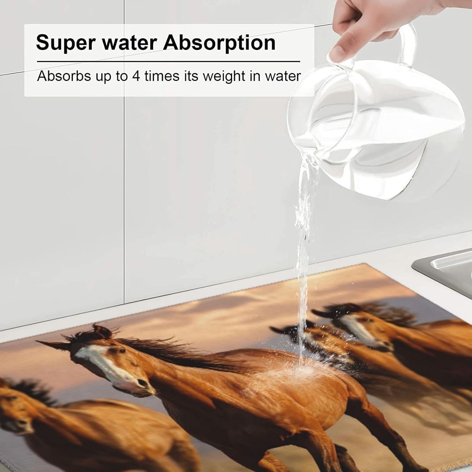 Absorbent and multifunctional: Horses Kitchen dish mat is made of high-quality materials that absorb water quickly, leaving your dishes and kitchen countertops dry; the multifunctional rack mat for kitchen can be placed anywhere you want to absorb water