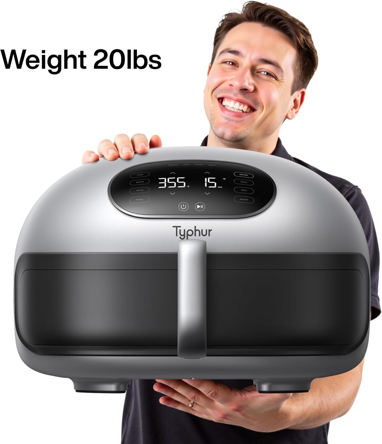 𝟭𝟱-𝗶𝗻-𝟭 𝗠𝘂𝗹𝘁𝗶𝗳𝘂𝗻𝗰𝘁𝗶𝗼𝗻𝗮𝗹 𝗖𝗼𝗼𝗸𝗶𝗻𝗴 | The Typhur Dome 2 is designed to save space by consolidating multiple kitchen tools in to one. It’s capable of 15 cooking functions, including Pizza, Bacon, Steak, Wings, Fries, Frozen, Air Fry, Toast, Grill, Bake, Griddle, Roast, Broil, Dehydrate, and Reheat, covering nearly every cooking need.