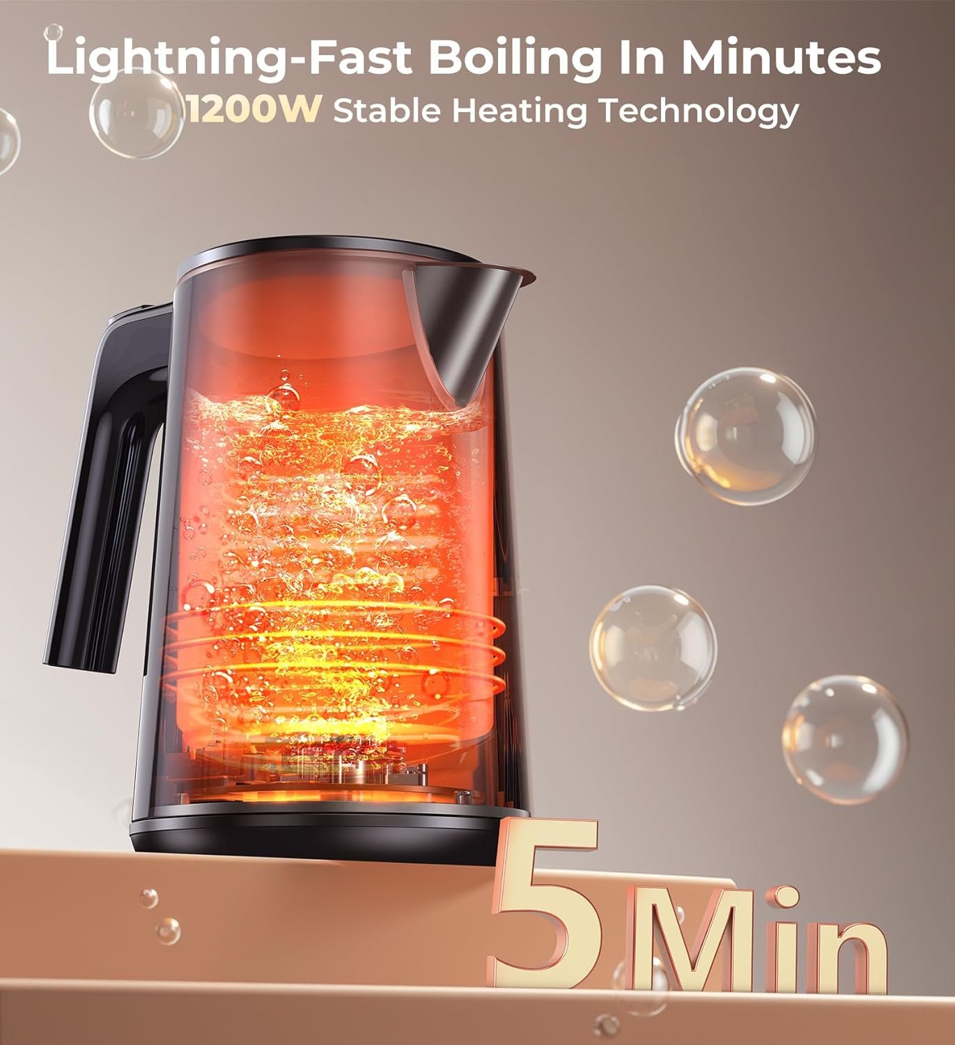 【Smart Efficient Electric Kettle】Designed for speed and convenience, this electric tea kettle boils water in minutes. Its automatic shutoff activates when water reaches the desired temperature or when the kettle is empty, saving energy and preventing overheating