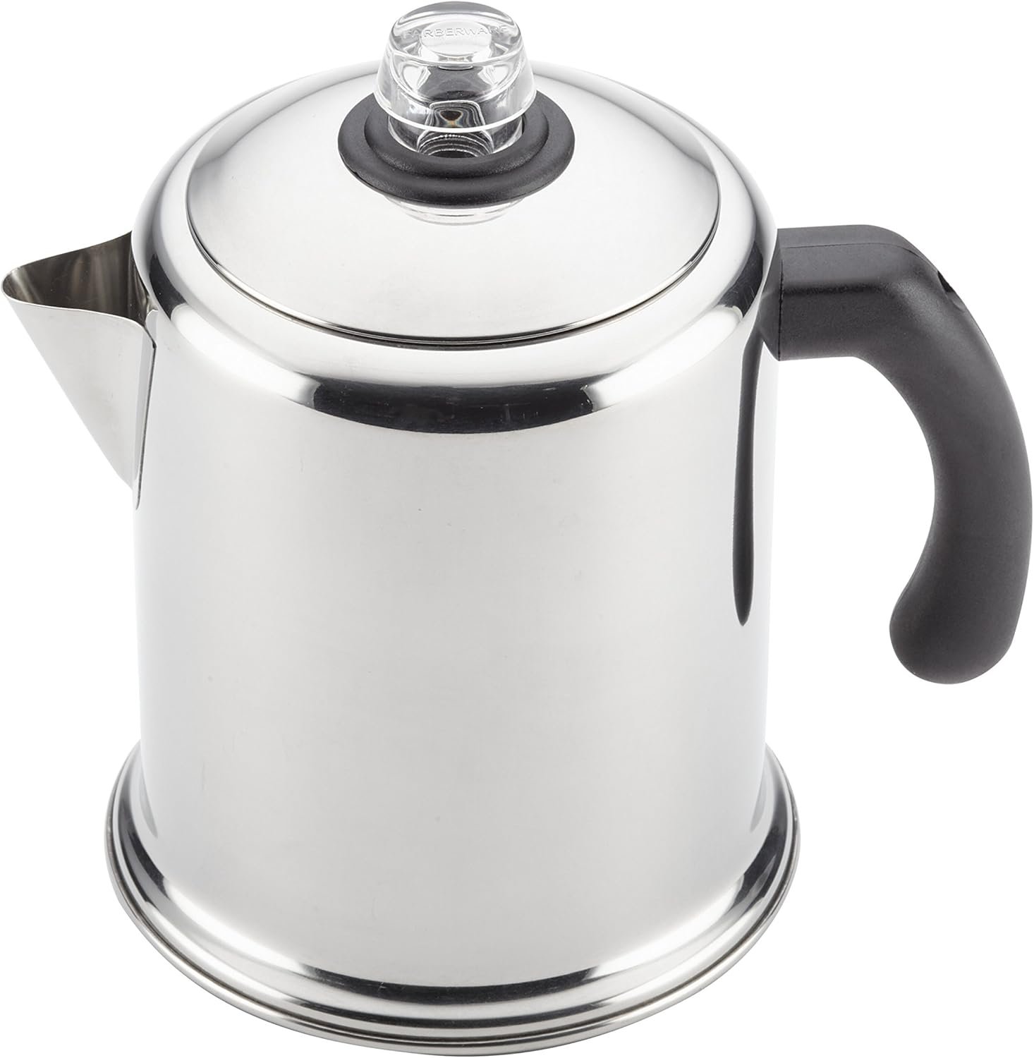 Brewing coffee on the stovetop extracts a fuller, richer flavor, and this Farberware 47053 Classic Stainless Steel Yosemite 12-Cup Coffee Percolator is ready to brew four to twelve cups of your favorite blends. The heavy-duty stainless steel is polished to a mirror finish for a classic touch and the sleek and traditional look fits in with any kitchen decor. A comfortable handle with iconic styling offers a confident grasp and is designed to provide a balanced grip while making coffee or pouring delicious French roasts or flavored coffee blends. A non-reactive coffee maker interior keeps water from absorbing any undesirable odors or tastes. And, with a permanent percolator filter basket, there’s no need to deal with messy paper filters. A tight-fitting lid seals in heat and the sturdy, see-through glass knob lets you know when percolating begins and ends. Fully immersible and dishwasher safe, this percolator makes a great addition to any of the Farberware collections.