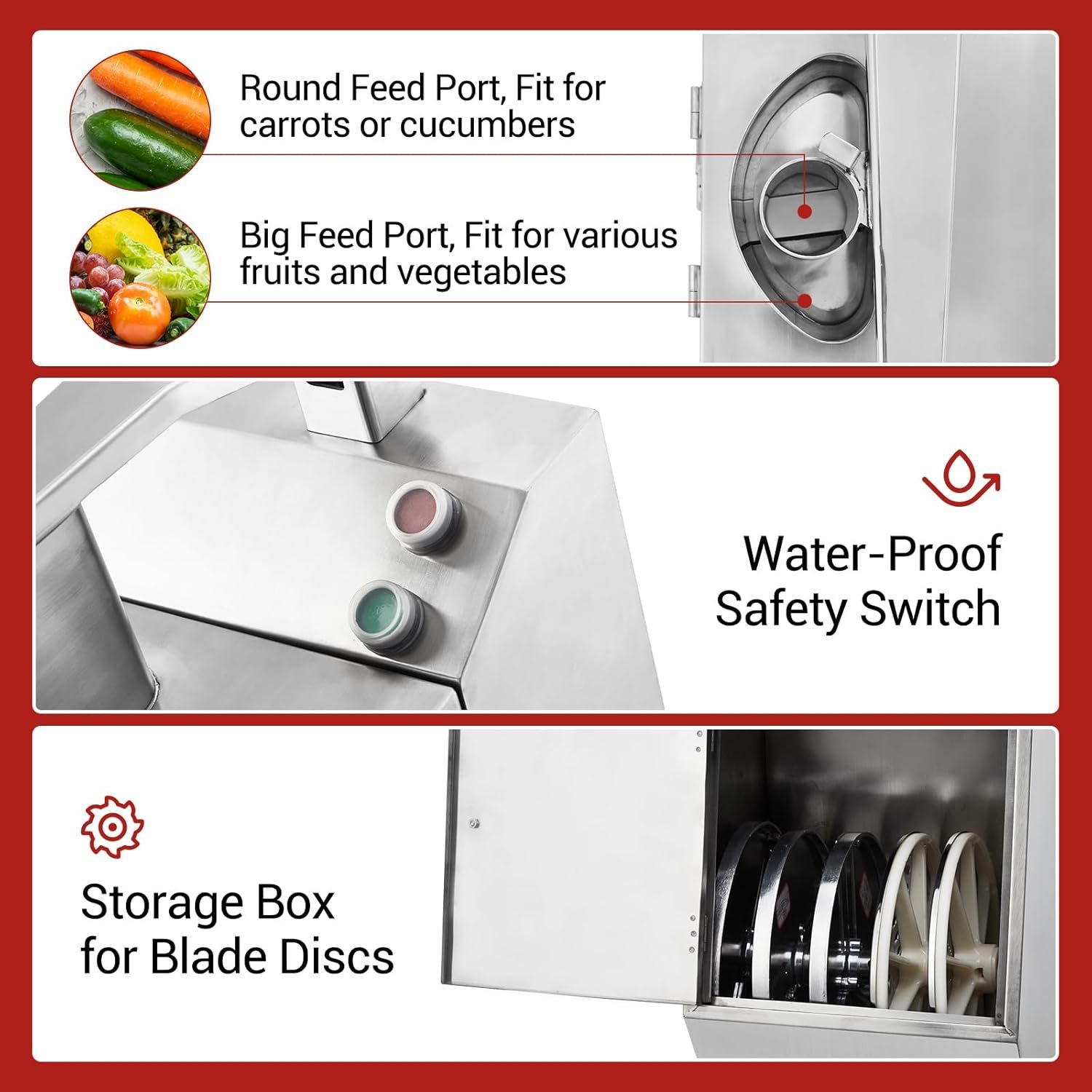 User-Friendly Design with Safety Features: Featuring a 2-button control and waterproof safety switch, this electric food processor is designed for straightforward operation. The large feed port (3.35″ W x 7.1″ L) allows for easy food loading, making your prep time a breeze