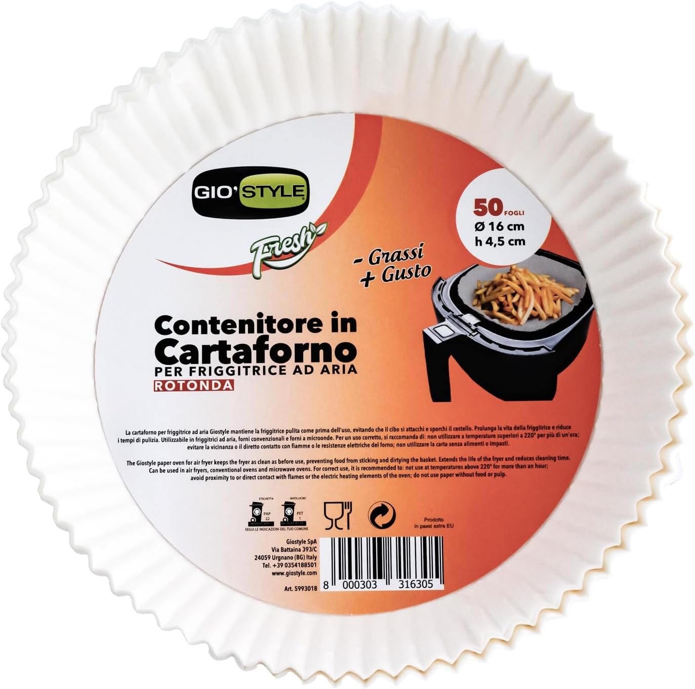 GIO’STYLE Pack of 50 Food Storage Containers for Air Fryer, Diameter 16 cm, Round with Holes, Made in Italy