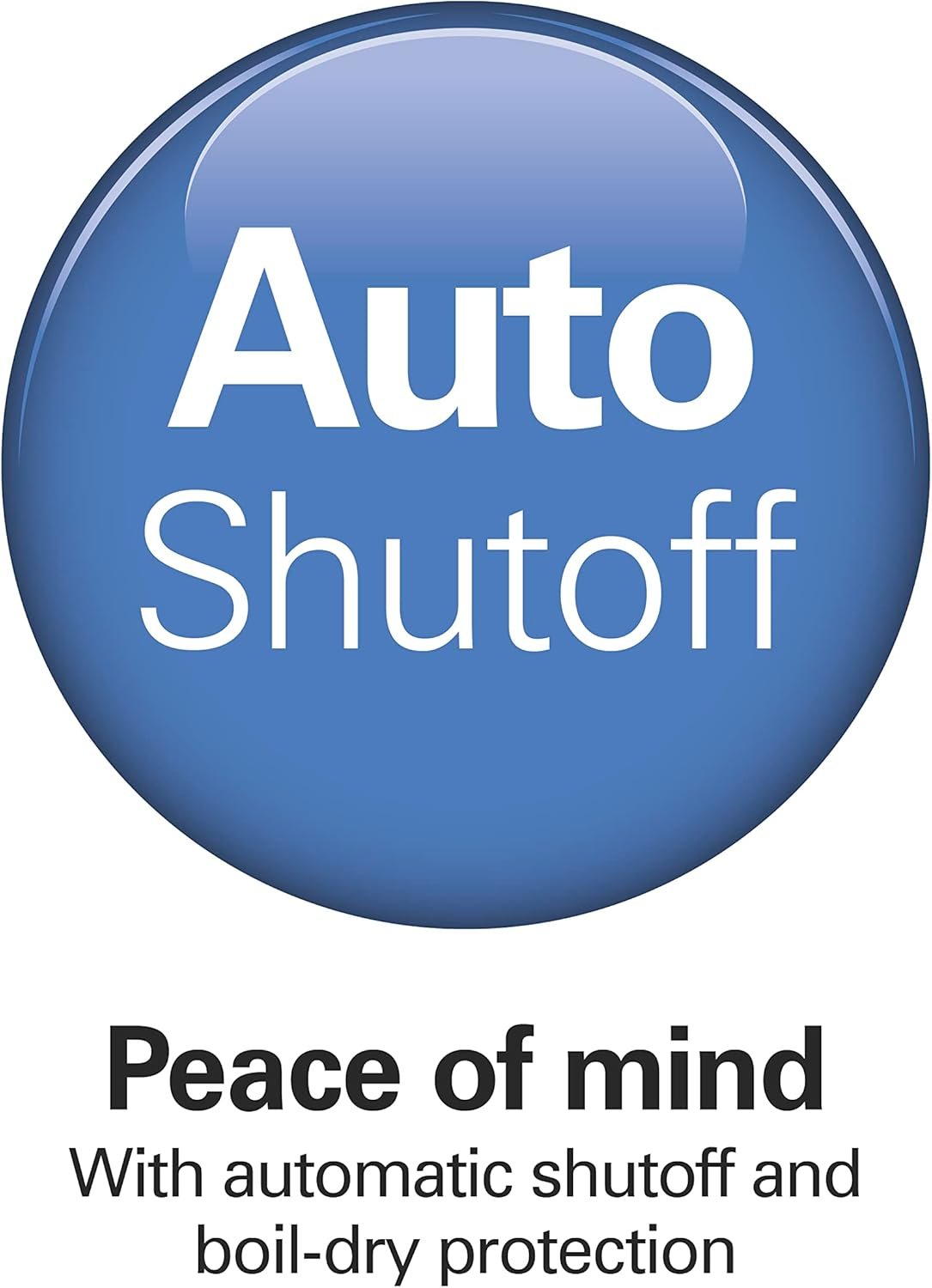PEACE OF MIND WITH AUTOMATIC SHUTOFF AND BOIL-DRY PROTECTION: The automatic shutoff feature with boil-dry protection keeps the stainless steel electric kettle from scorching.