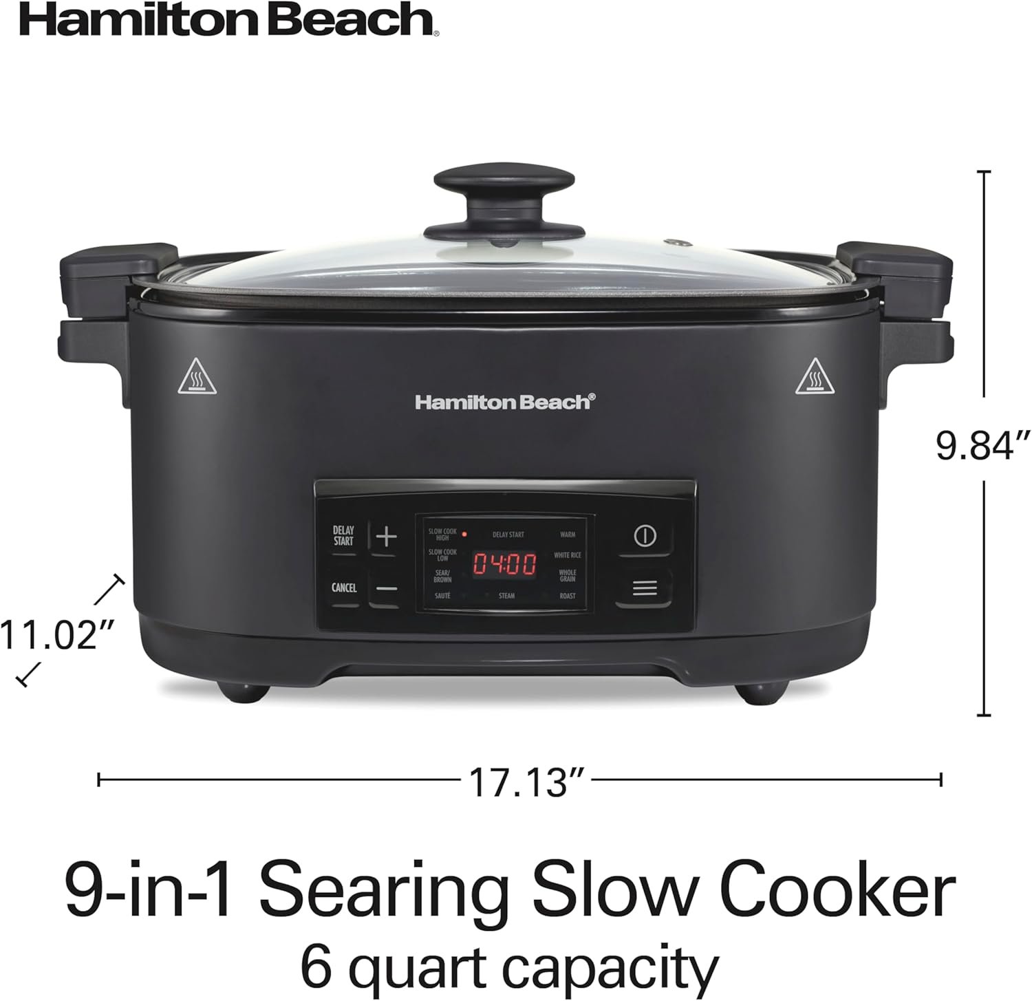 Hamilton Beach 6 Quart 9-in-1 Programmable Slow Cooker with Sear, Browning, Rice, Steam, Sauté, Roast Delay Start & Keep Warm Functions, Nonstick PFAS-Free Dishwasher Safe Crock, Black (33604)