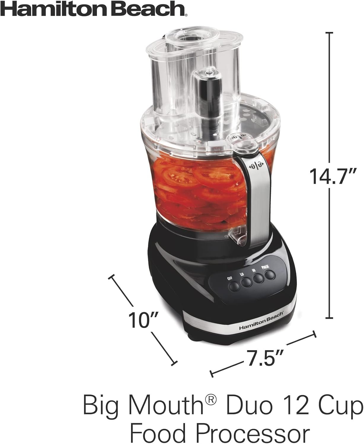 Hamilton Beach Big Mouth Duo Plus 12 Cup Food Processor & Vegetable Chopper with Additional Mini 4 Cup Bowl, Black (70580)