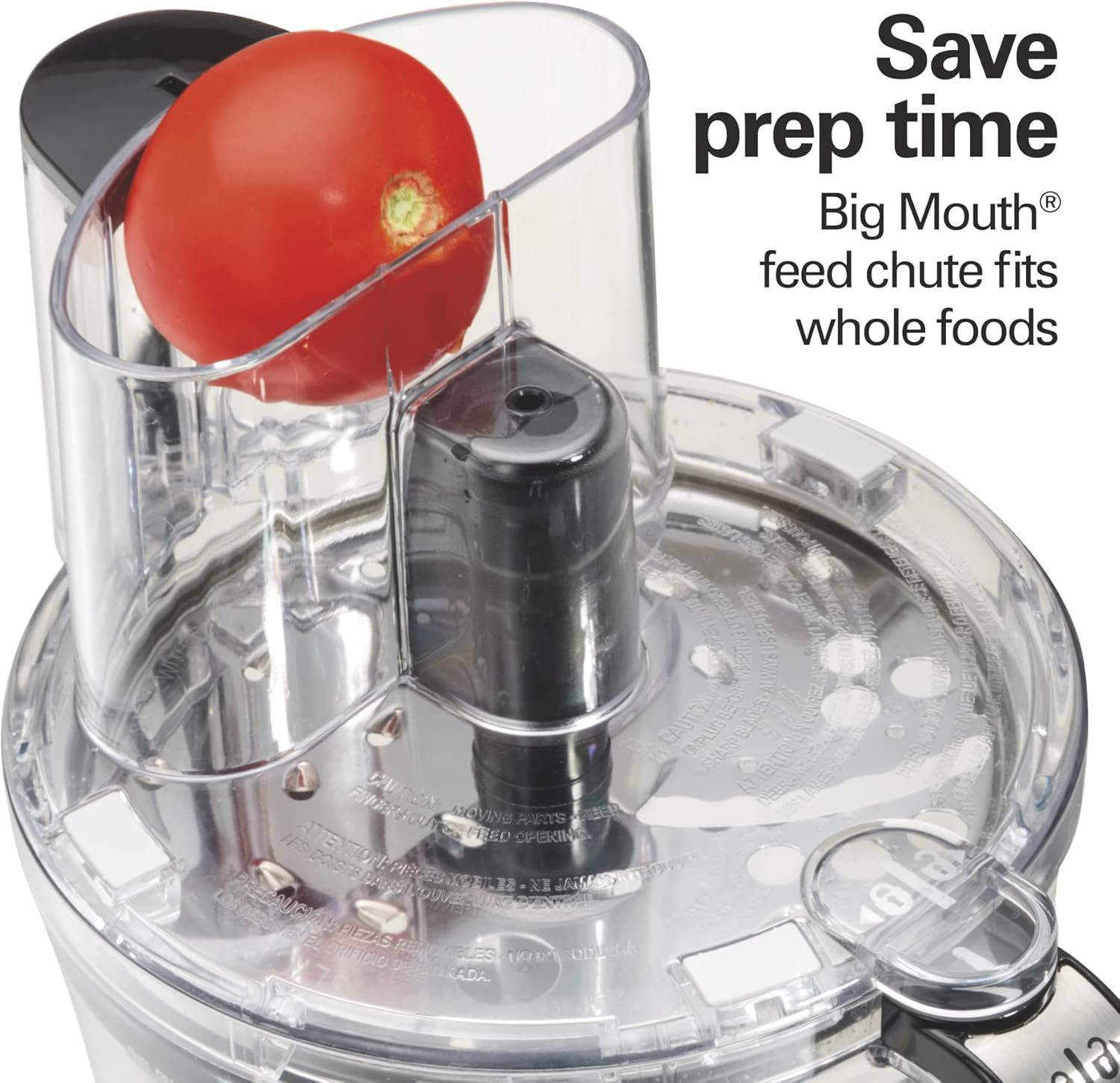 With an extra-large Feed tube, In-bowl blade storage, A powerful motor with 3 speed Plus pulse, and dishwasher-safe parts, the Hamilton Beach big mouth duo Plus 12-Cup food Processor & vegetable chopper with additional small 4-cup bowl is the ultimate kitchen appliance.