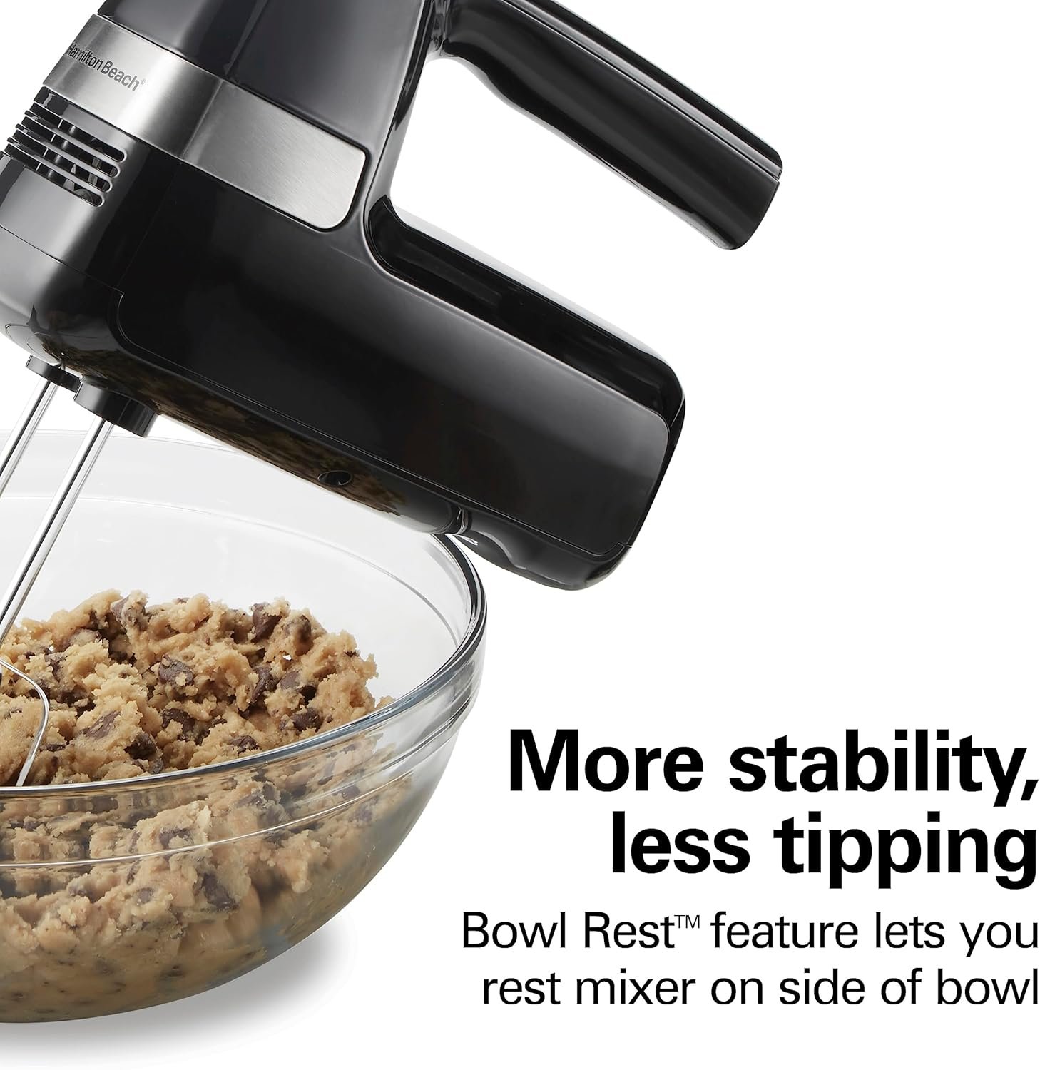 MORE STABILITY, LESS TIPPING: If you need to step away from the mixer for a moment to add ingredients, the Bowl Rest feature lets you rest this kitchen hand mixer on the edge of your bowl.