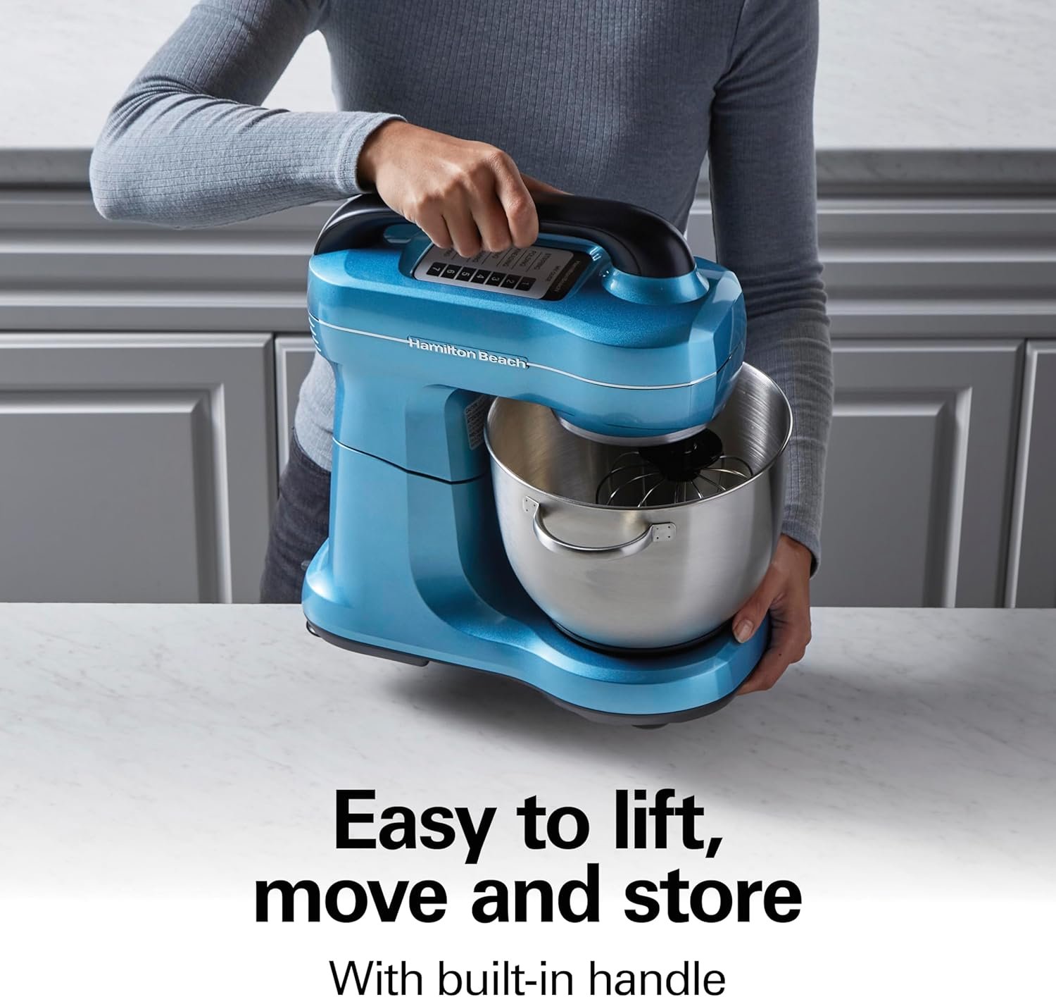 EASY TO LIFT, MOVE AND STORE WITH BUILT-IN HANDLE: The top handle gives you a better grip on lifting the mixer’s head to add ingredients or swap out attachments. When you want to store the stand mixer away, use the same handle for easy moving.