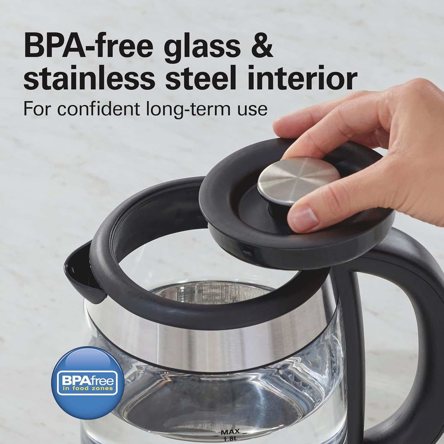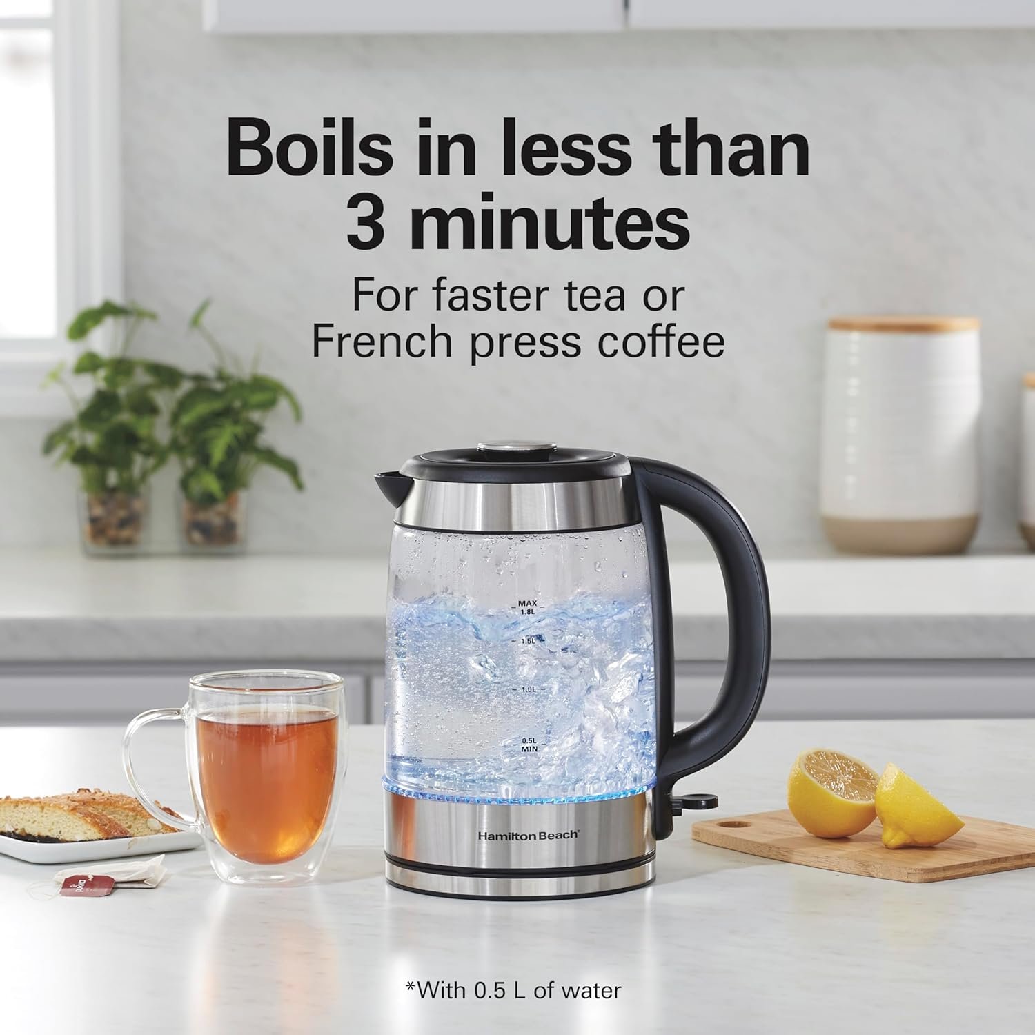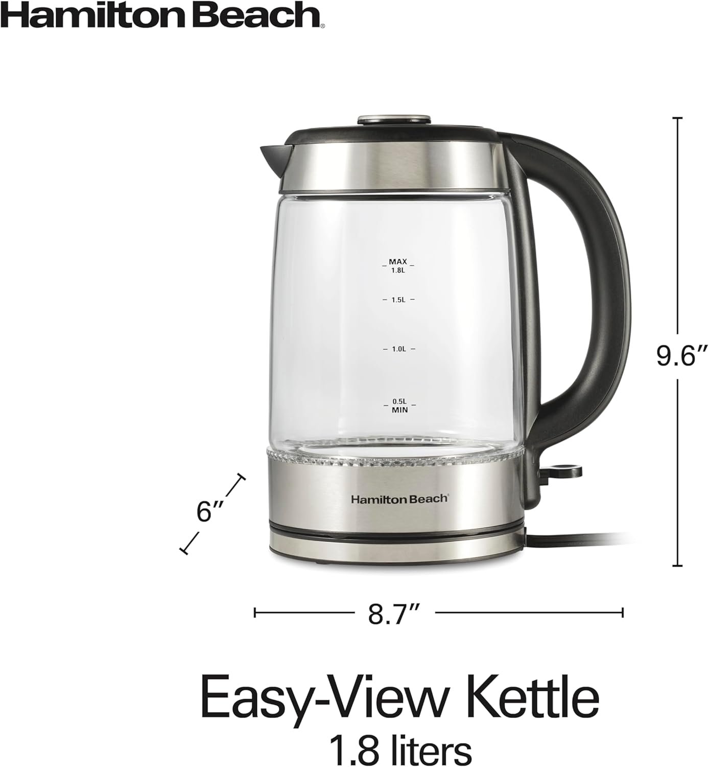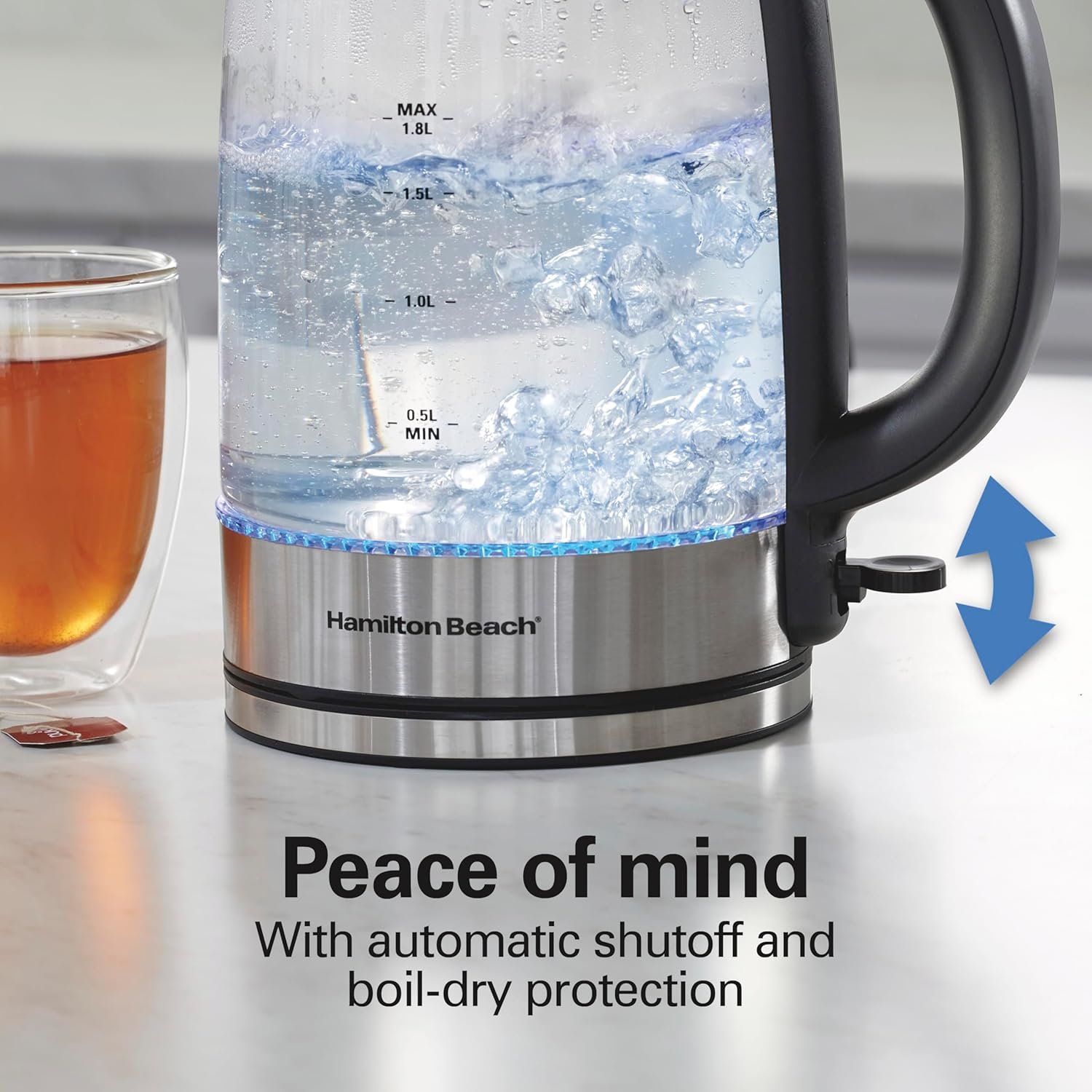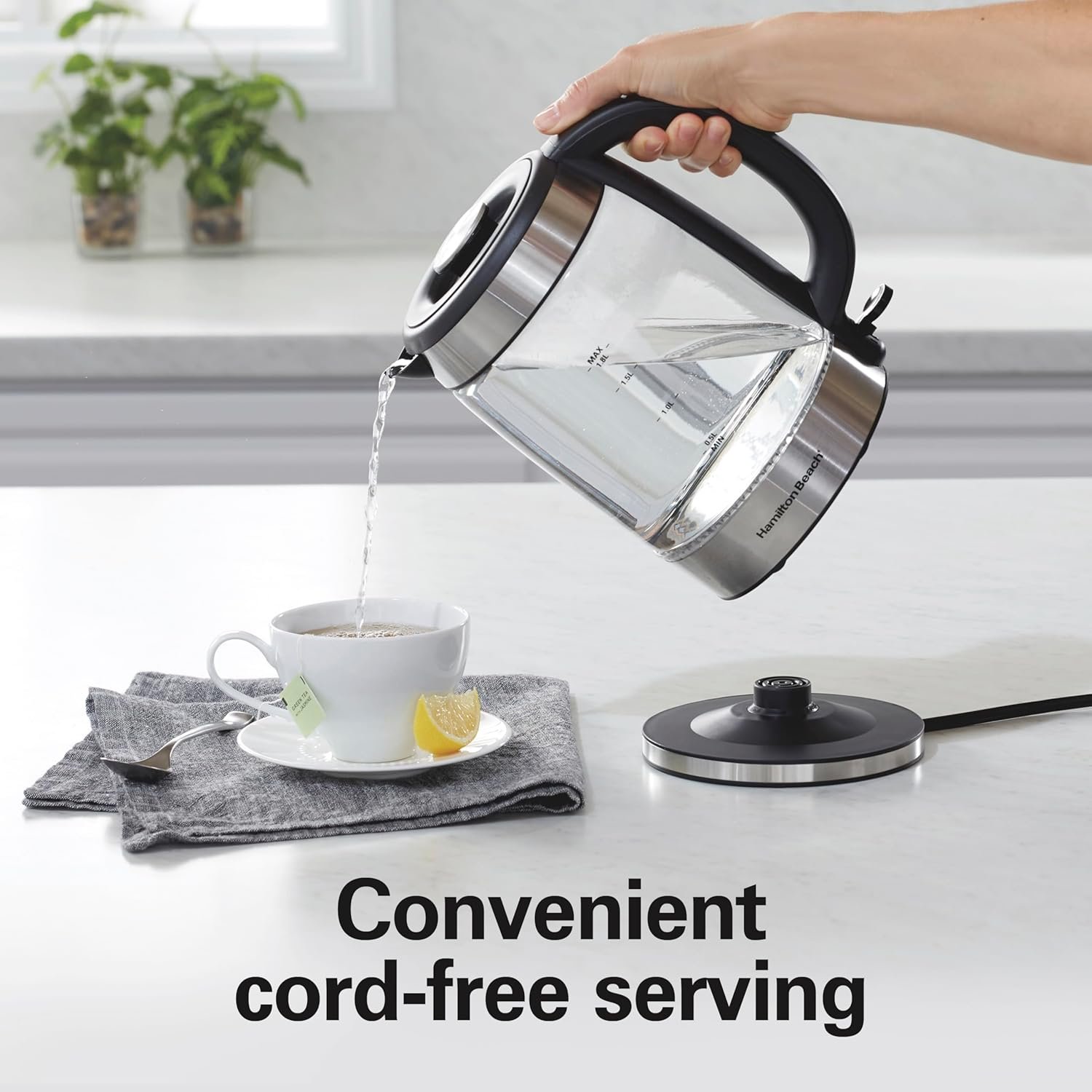Hamilton Beach Electric Tea Kettle, Water Boiler & Heater, 1.8 Liter, Cordless Serving, 1500 Watts for Fast Boiling, Auto-Shutoff and Boil-Dry Protection, Easy-View Glass (40853C)