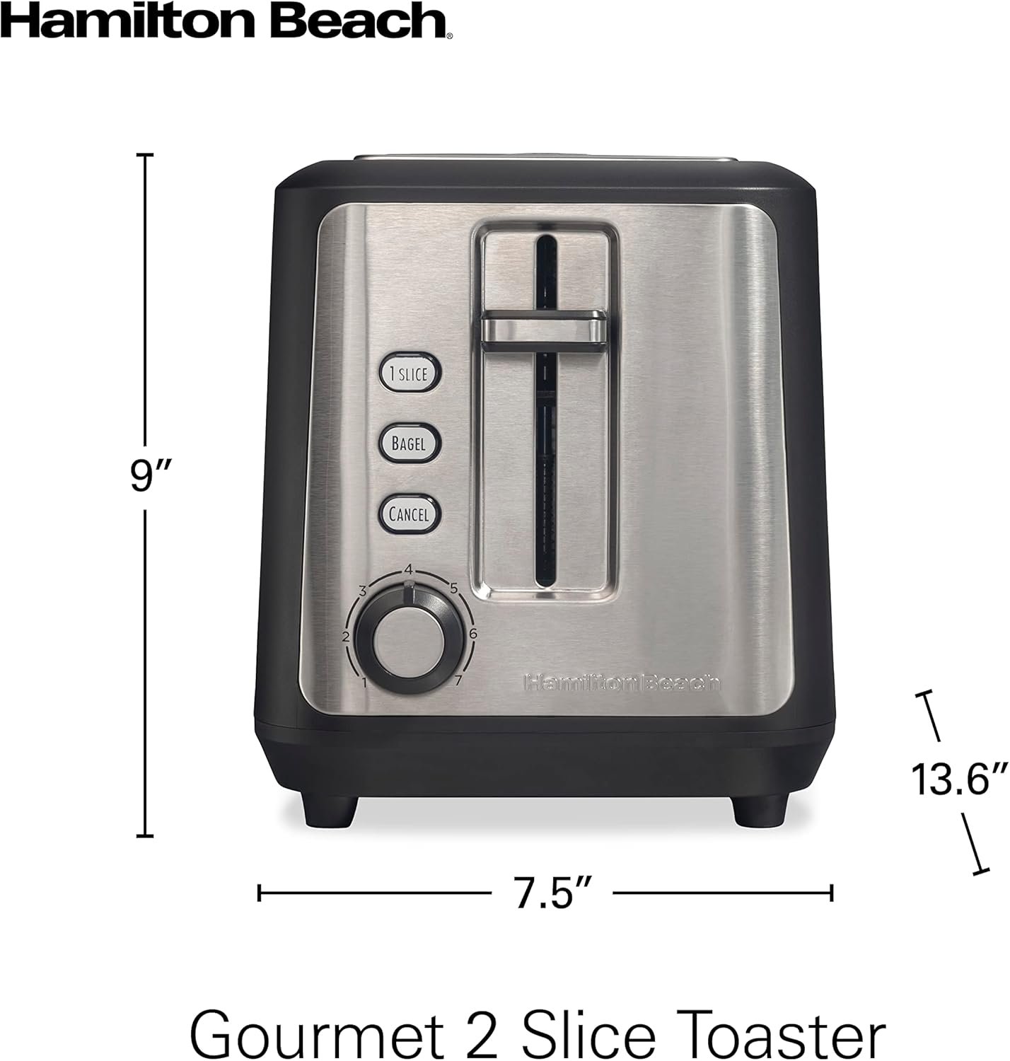 Hamilton Beach Gourmet 2 Slice Slot Toaster with Extra Long & Wide Slots, Sure-Toast Technology, Shade Selector, Bagel Setting, Matte Black and Stainless Steel (22996)