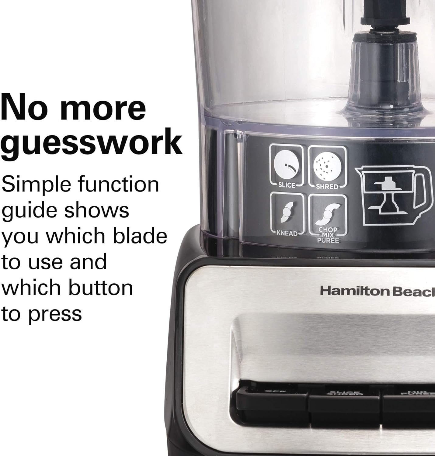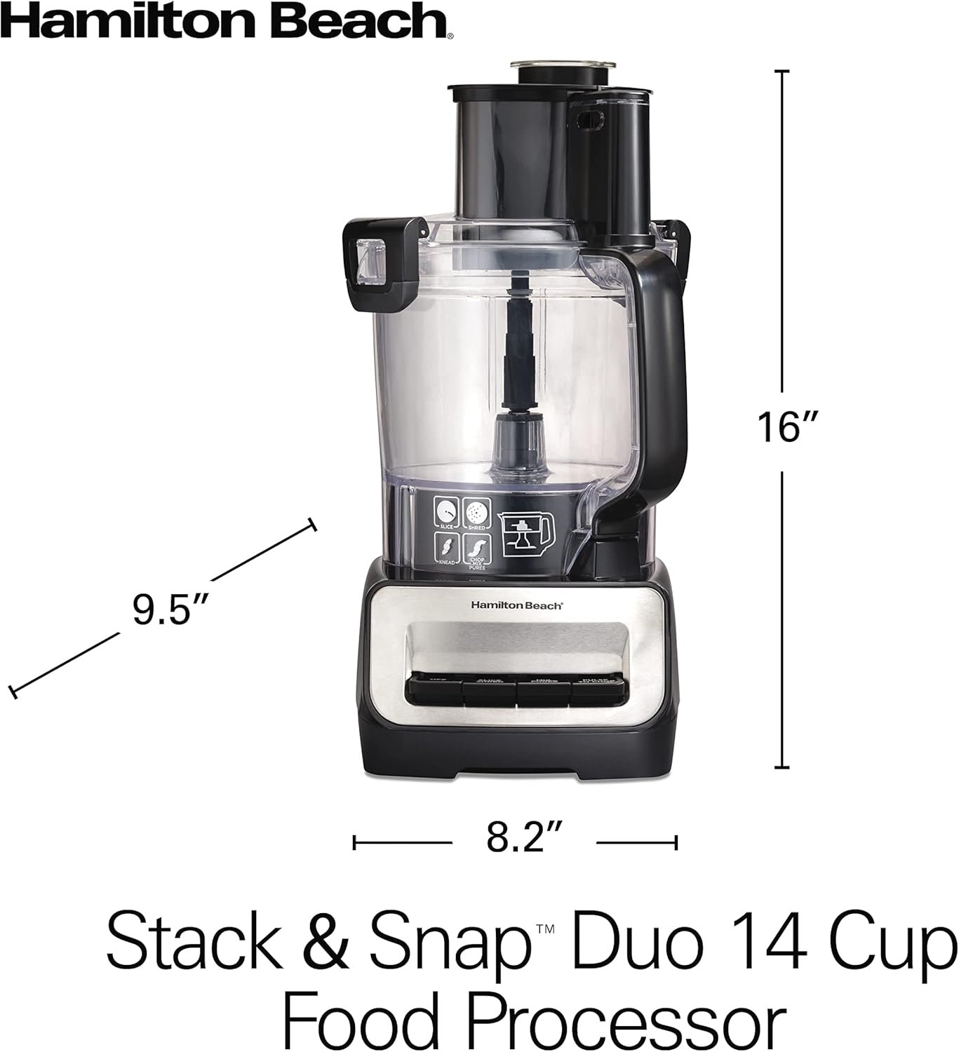 SLICE, SHRED, CHOP, PUREE AND KNEAD WITH 4 VERSATILE ATTACHMENTS: This Hamilton Beach food processor includes a reversible slicing/shredding disc, 2 stainless steel S-blades to fit the 14 cup and 4 cup bowls and a dough blade that makes kneading easy.