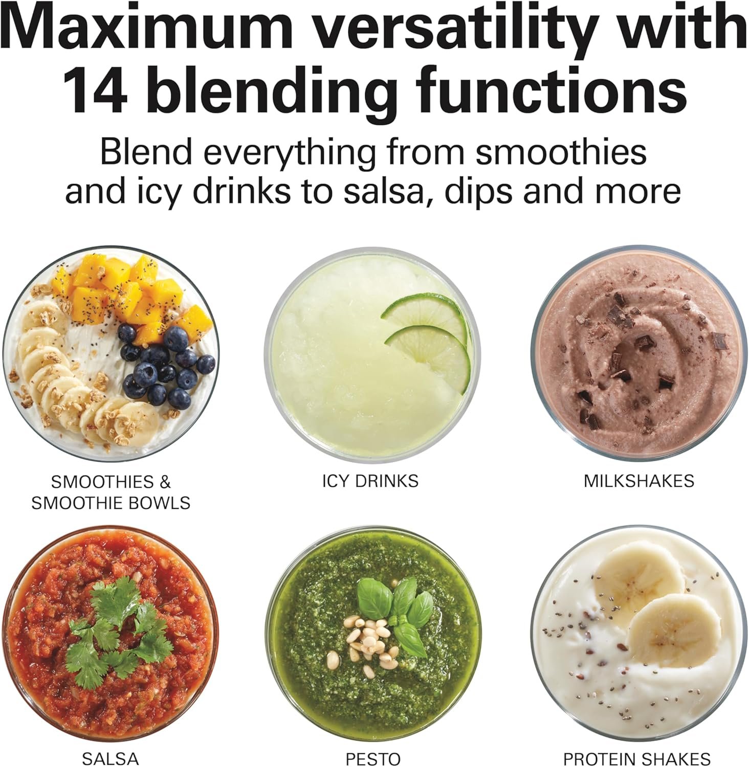 14 FUNCTIONS FOR MAXIMUM BLENDING VERSATILITY: Easily blend everything from smoothies and icy drinks to salsa and dips with this smoothie maker blender. The intuitive interface makes choosing the right blending function a breeze.