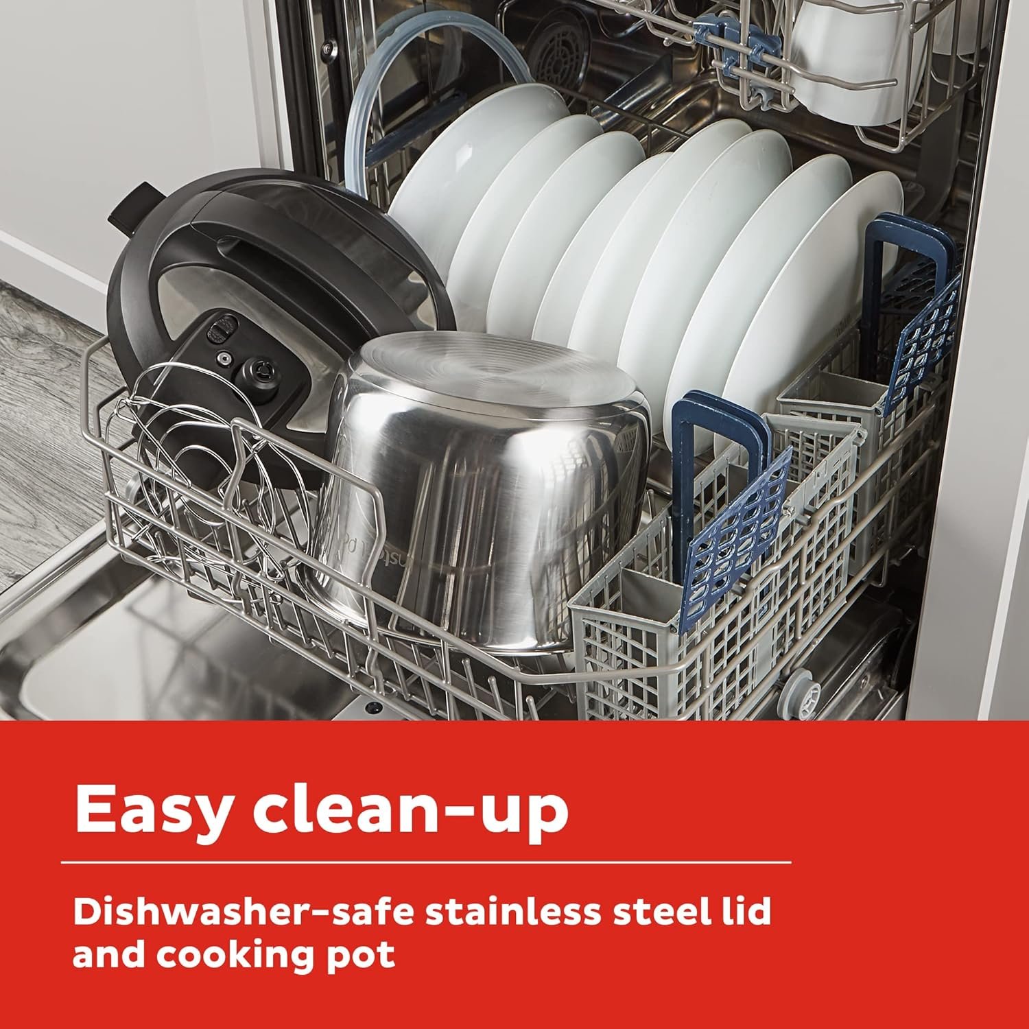 QUICK AND EASY CLEAN UP: Finger-print resistant sides with dishwasher-safe lid, inner pot, and accessories.