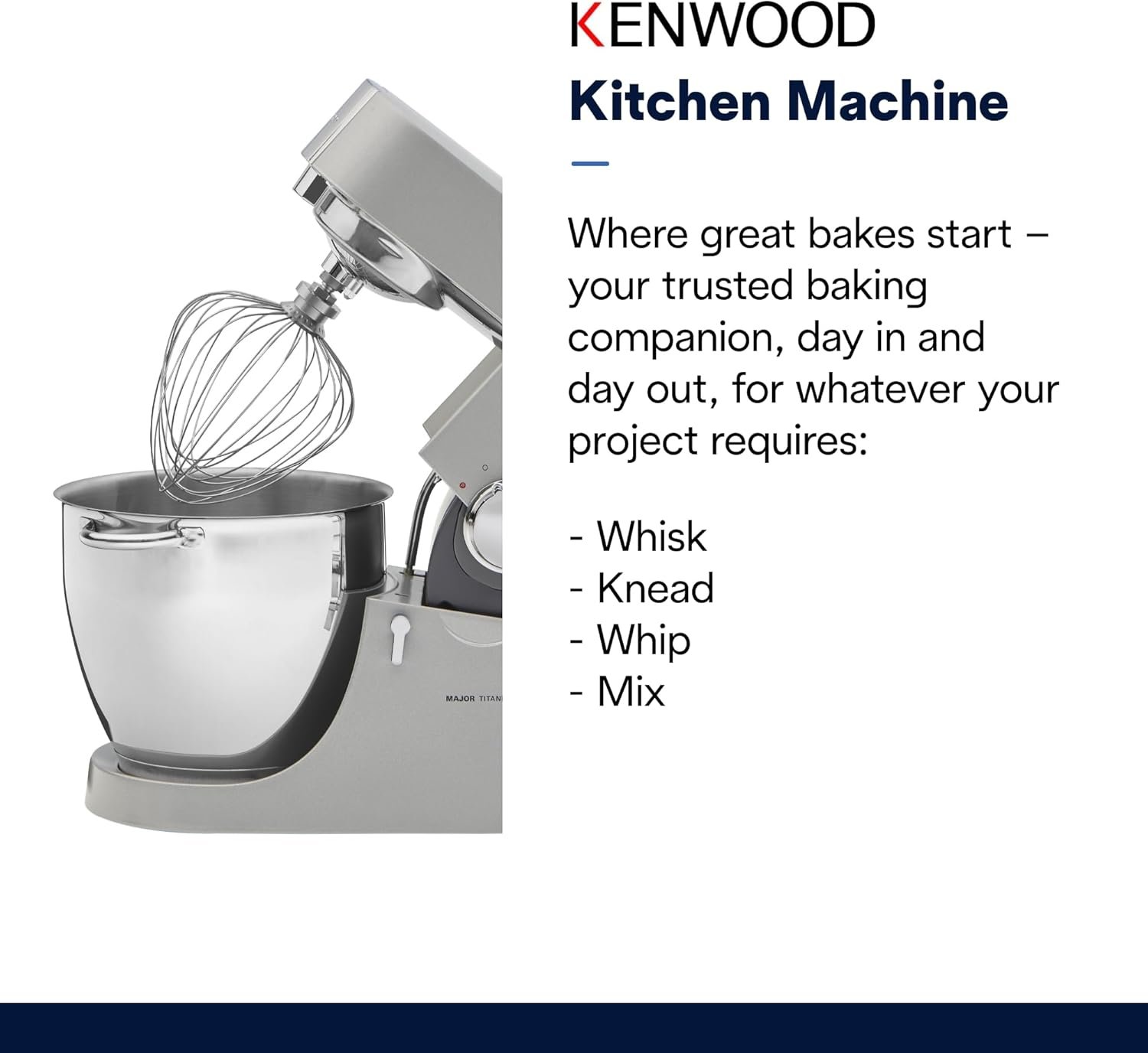 Be the first to review “Kenwood Chef Titanium Kitchen Machine, Stainless Steel – 7 qt – Kitchen Mixer – 800W Motor & Electronic Variable Speed Control – Includes Dishwasher-Safe Work Bowl & Three Mixing Tools”