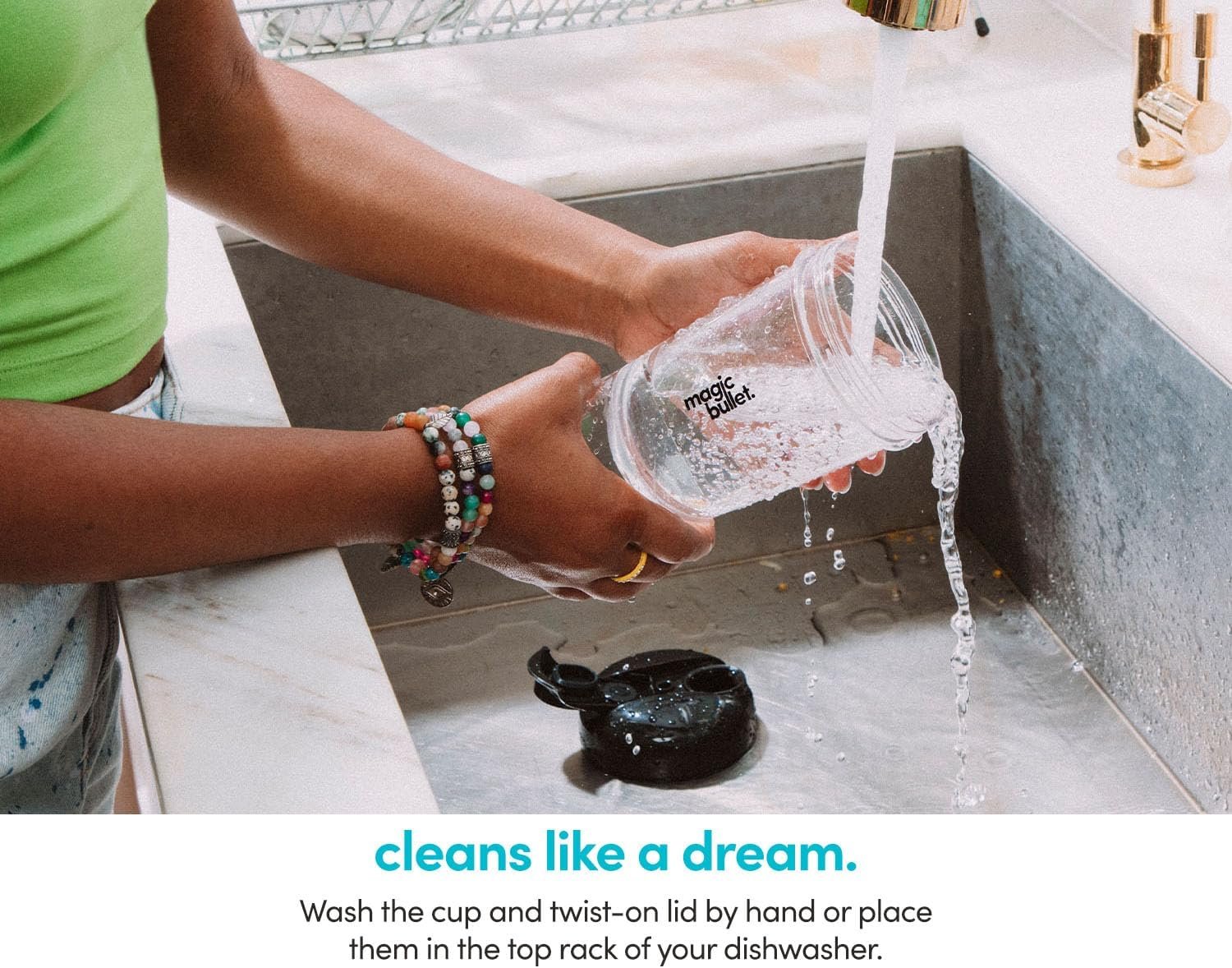 We keep it tidy with top-rack dishwasher-safe attachments and a silicone spout cap that catches drips before they hit your countertop.