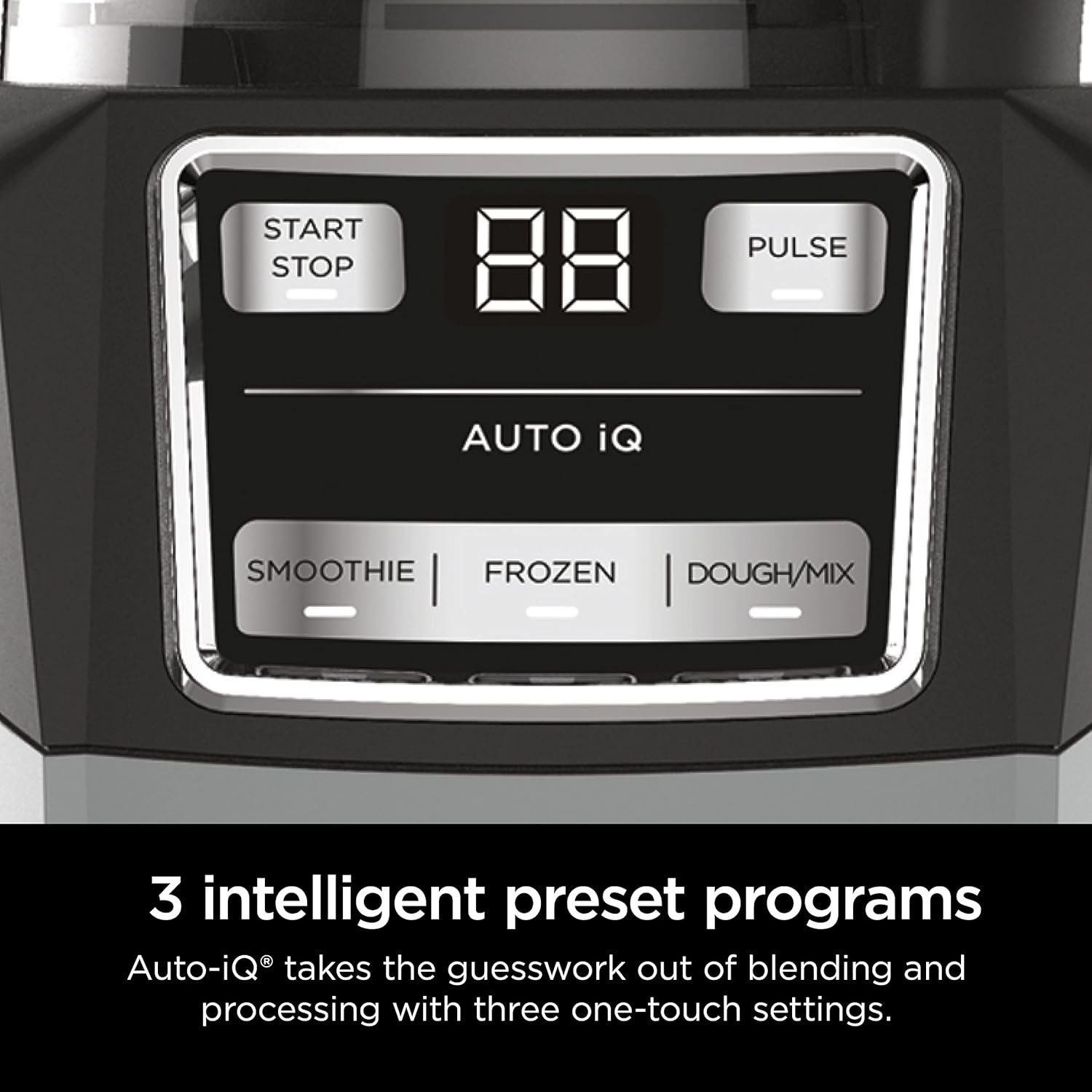 Ninja Blender, Compact Kitchen System, 1200W, 3 Functions for Smoothies, Dough & Frozen Drinks with Auto-IQ, 72-oz.* Blender Pitcher, 40-oz. Processor Bowl & 18-oz. Single-Serve Cup, Grey, AMZ493BRN