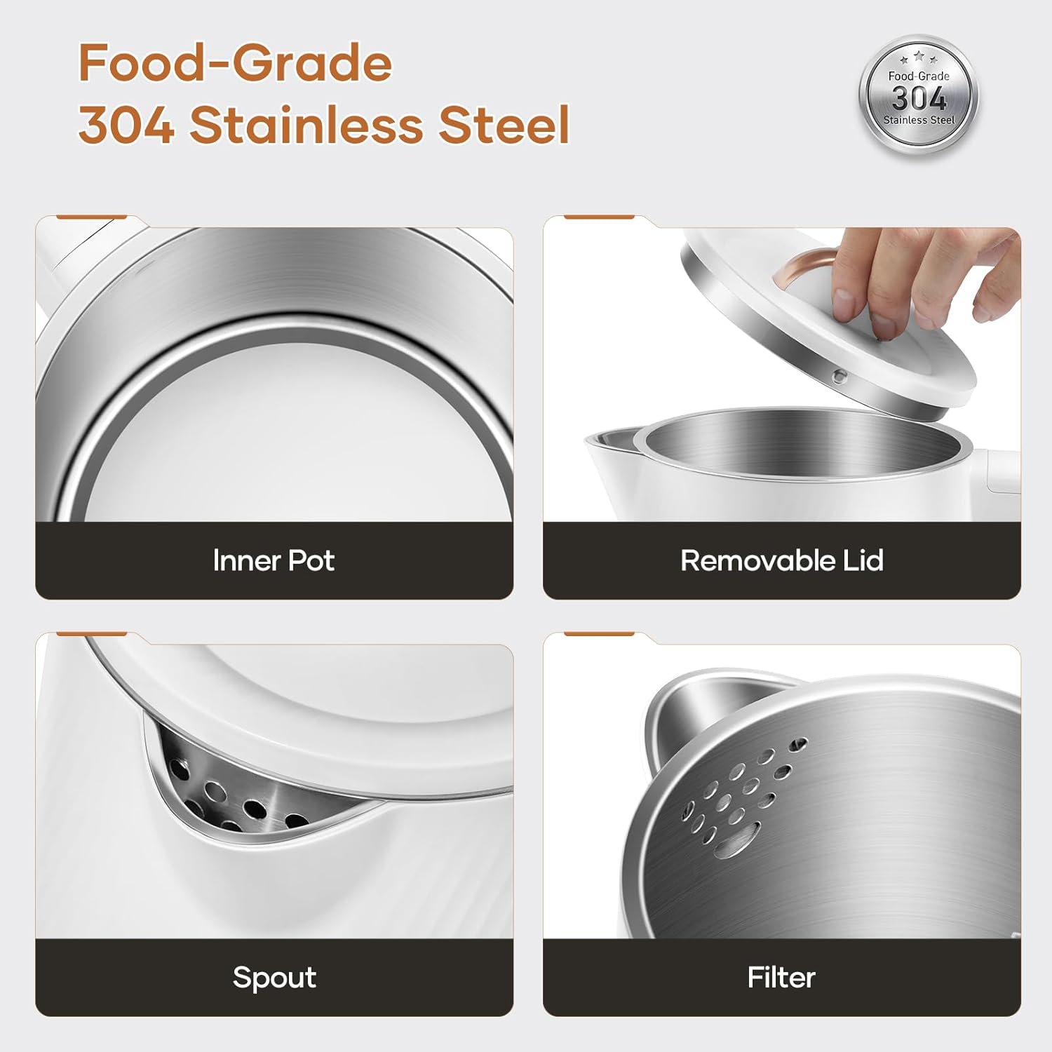 Sleek, Stylish & Easy-to-Clean – Featuring a modern, minimalist design that fits beautifully in any kitchen, this kettle combines elegance with practicality. Plus, its detachable lid makes cleaning effortless, so your kettle stays as spotless as the day you bought it