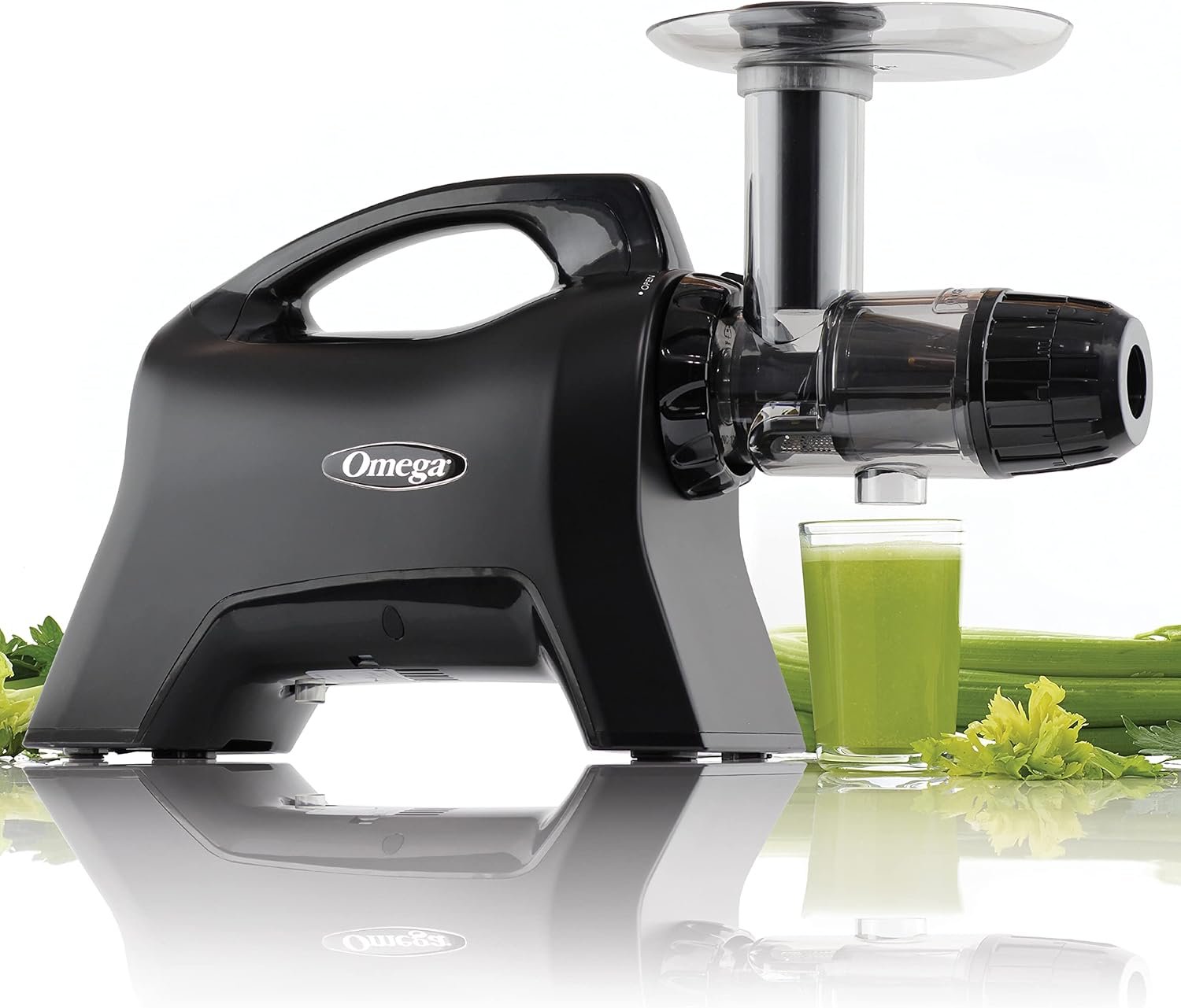 Omega Cold Press Juicer Machine, Vegetable and Fruit Juice Extractor and Nutrition System Makes Nut Milks Baby Food and Sorbets, Triple-Stage 80-RPM Slow Masticating Juicer, 200-Watts, Black