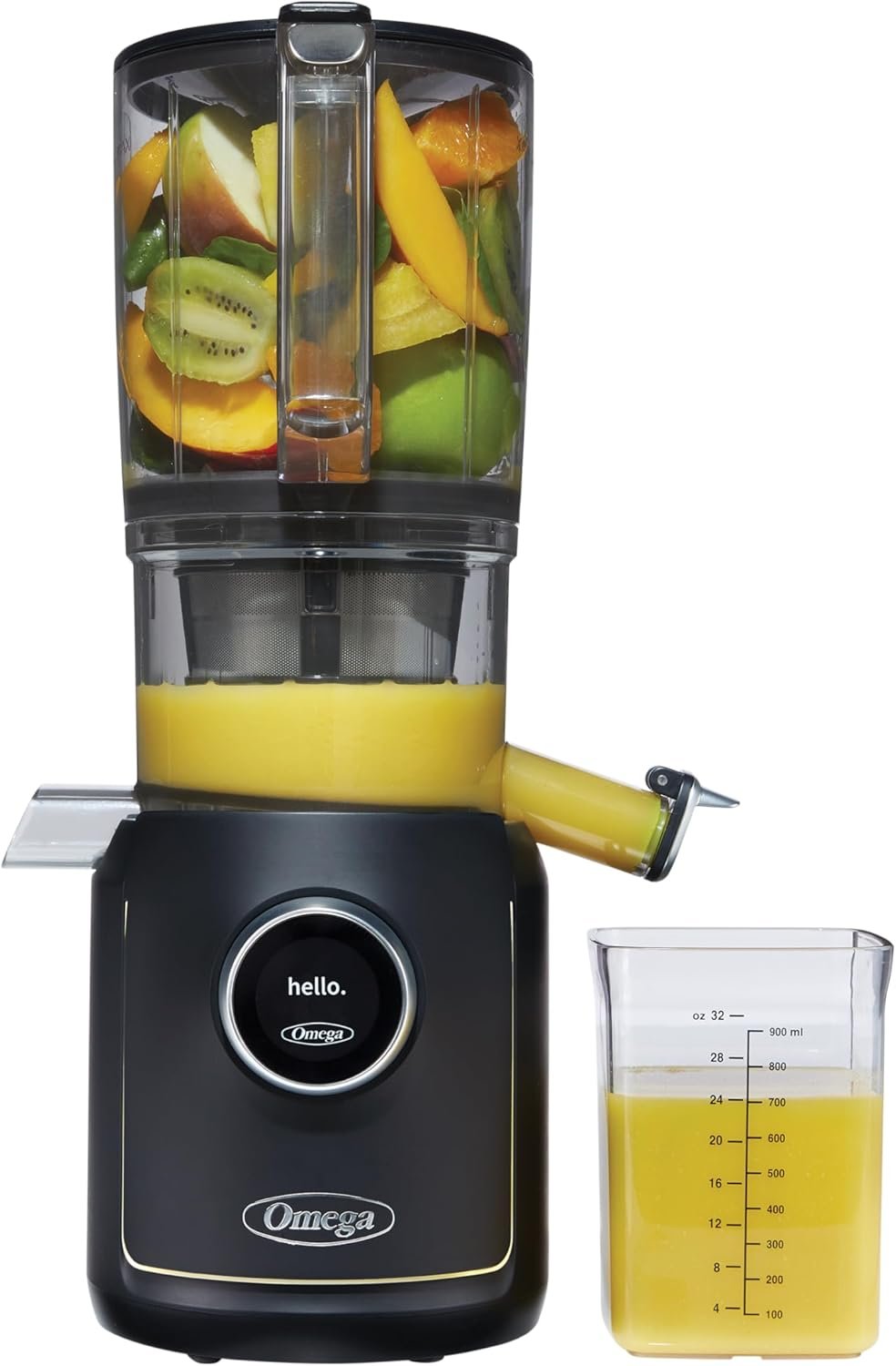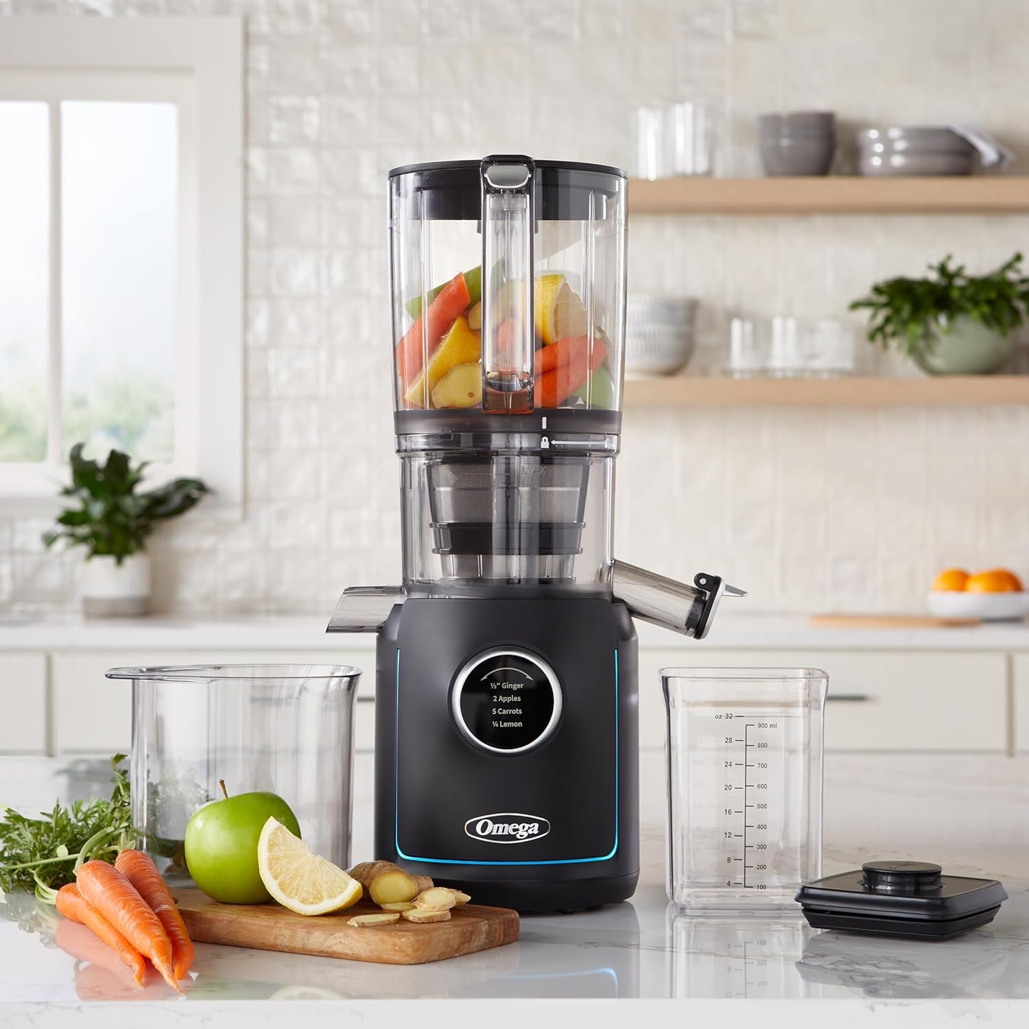 Omega Ultimate Performance Slow Masticating Batch Juicer with Intellidial Technology Cold Press Vegetable and Fruit Juice Extractor with 64-Ounce Hopper and 4 Juice Shot Glasses, 200-Watts, Black