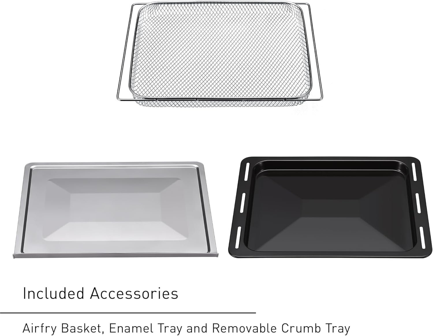Versatile, Stylish Design: Sleek stainless steel design with push button and dial controls plus LED display. Spacious easy-clean interior fits a 12″ pizza, 4 slices of bread or a small chicken. Includes mesh basket rack for dehydrating and air frying, oven rack, and enamel tray