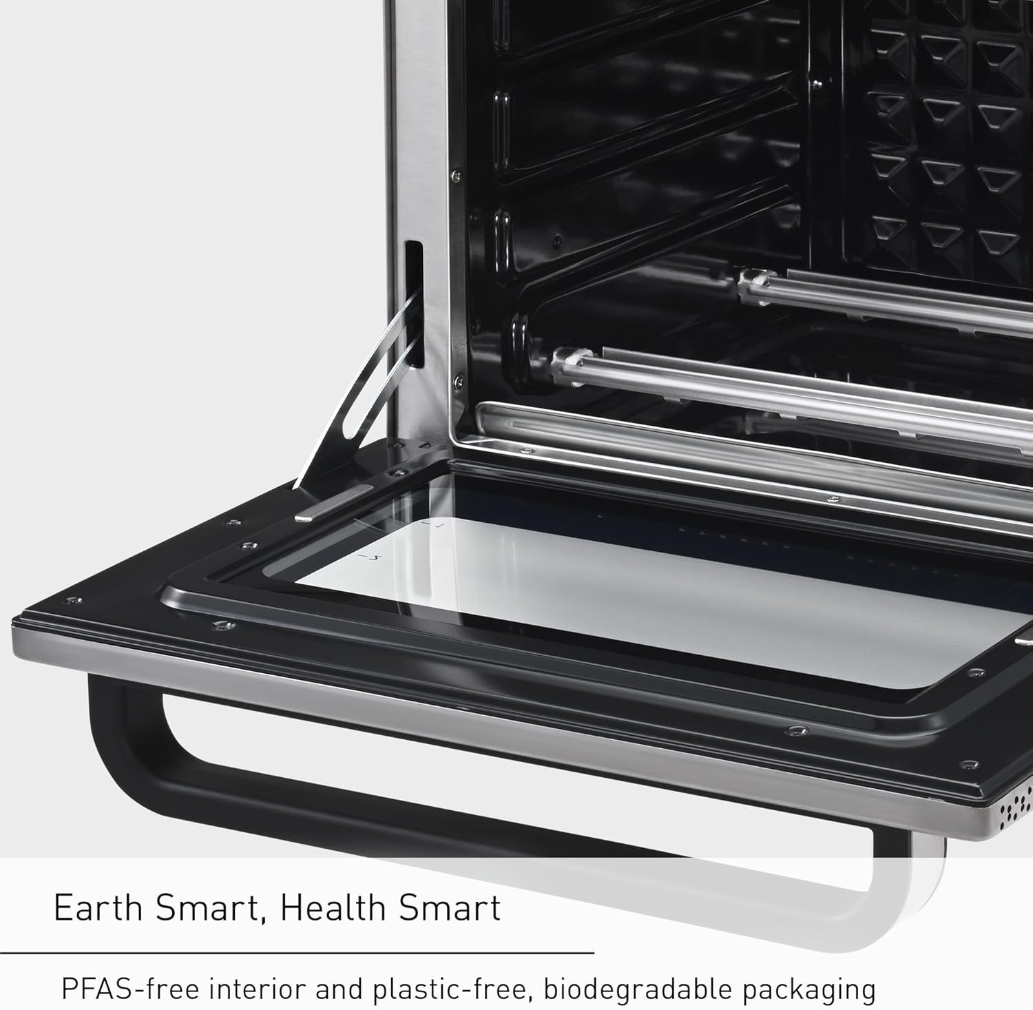 PFAS-Free for Peace of Mind: Enjoy cooking with confidence knowing that the NB-G211 interior is free of PFAS. And, plastic-free packacing is completely biodegradable, making this toaster oven healthier for you, and the planet