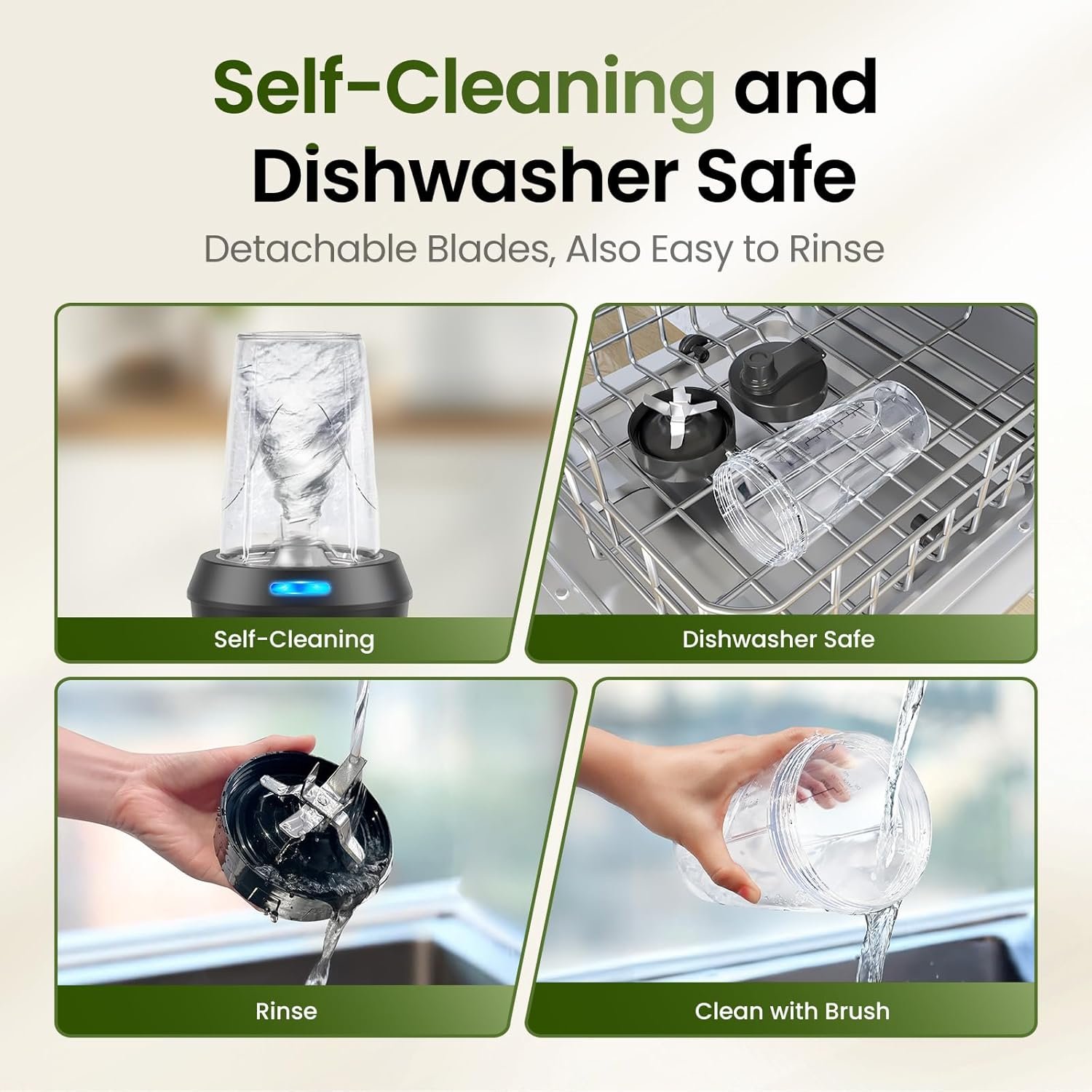【Easy Dishwasher Cleaning】The smoothie blender cups and to-go lids are dishwasher safe can be easily placed in the dishwasher to release your hands when you get home from work