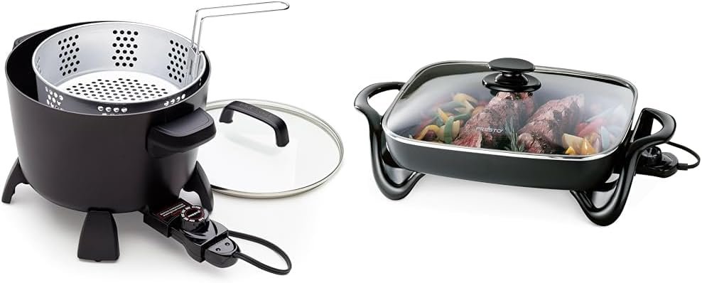 Presto 8-Quart Big Kettle, Steamer and Deep Fryer Multi-Cooker, Black & 06852 16-Inch Electric Skillet with Glass Cover