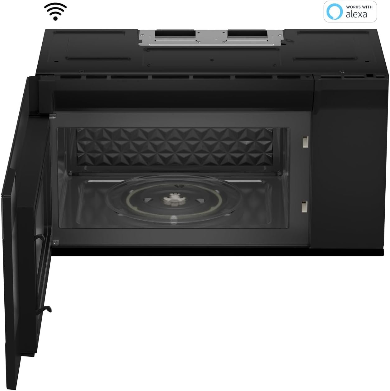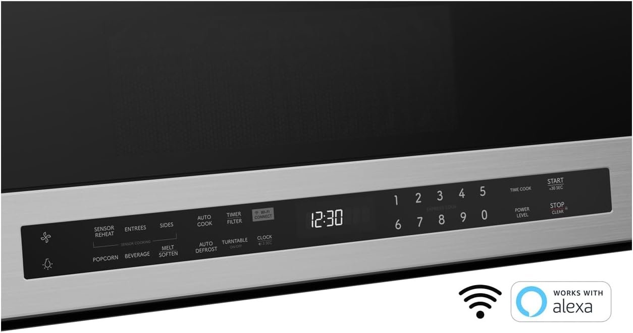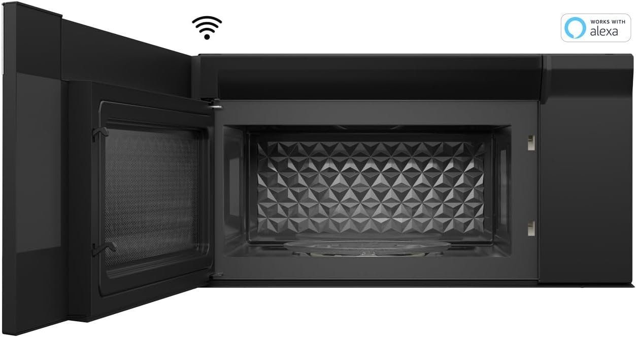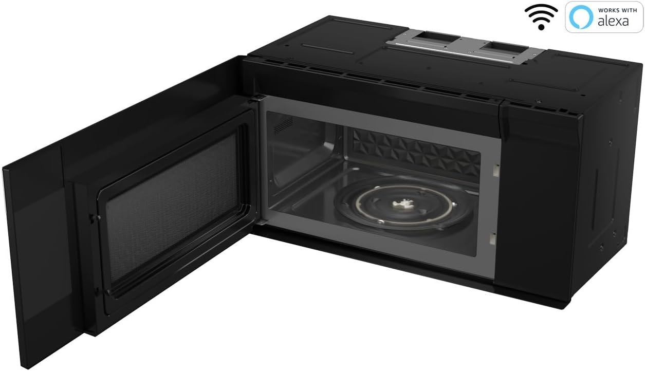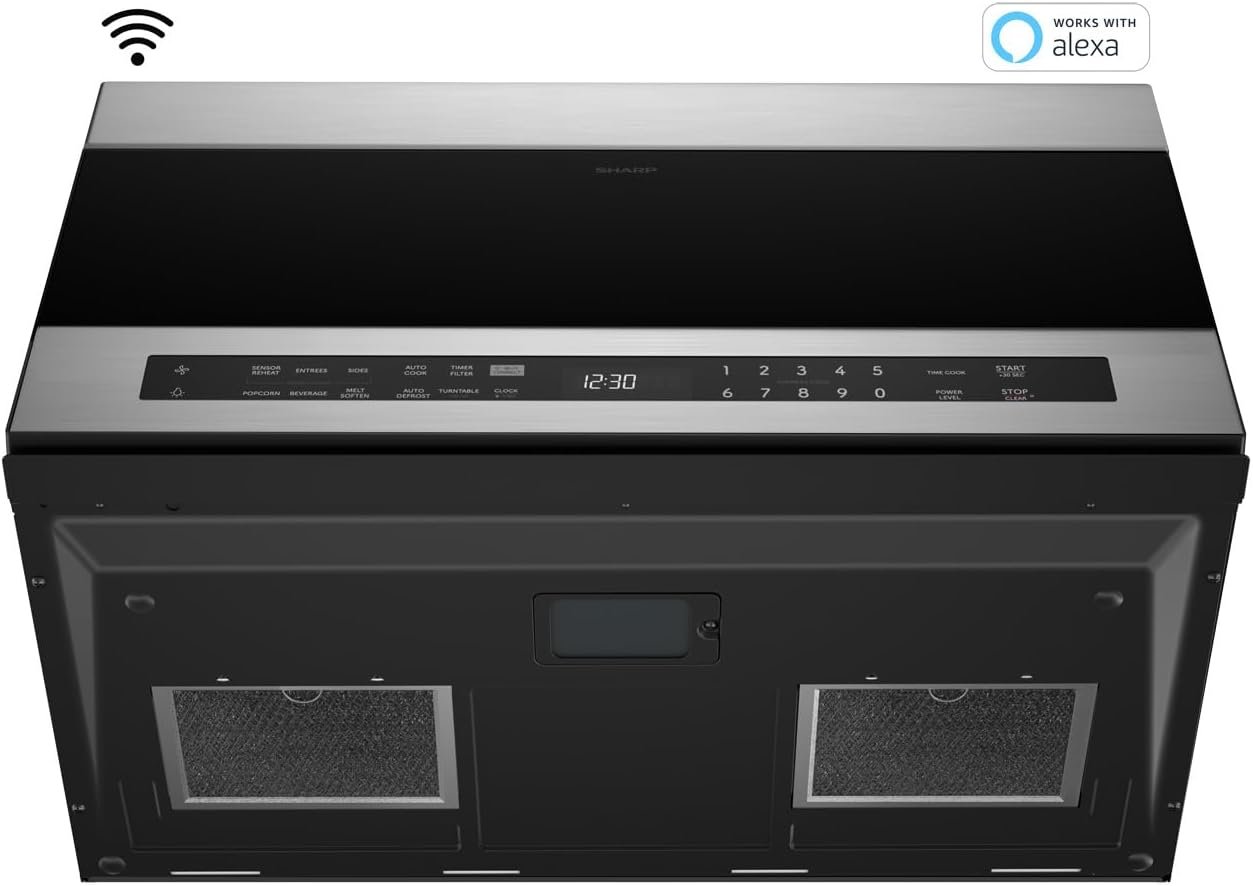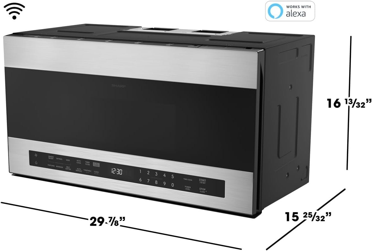 SHARP Smart Over the Range Microwave Oven with 13.6″ Carousel Turntable, 30-inch, 1.7 Cubic Feet, 1,000 Watt, 300CFM Fan, Sensor Cooking, Works with Alexa, Edge to Edge Black Glass with Stainless