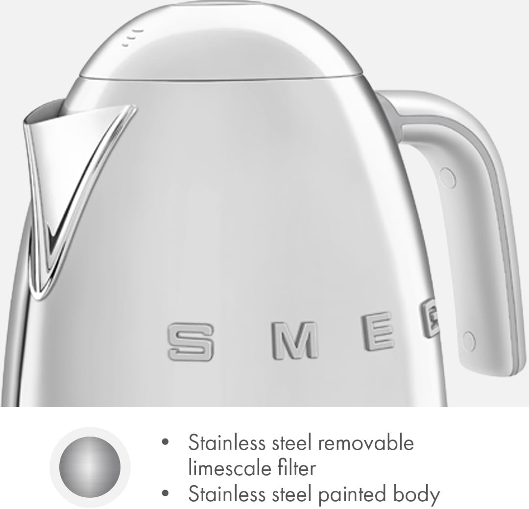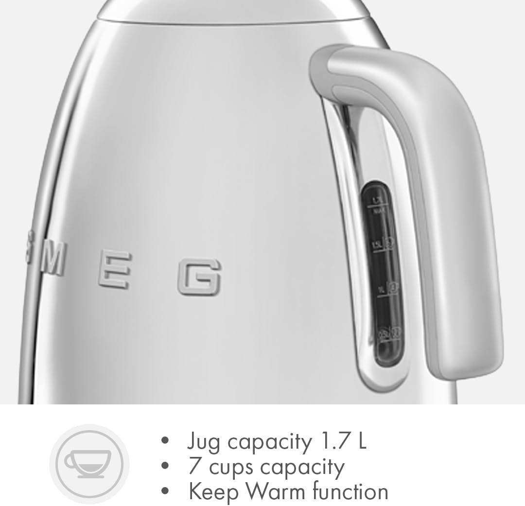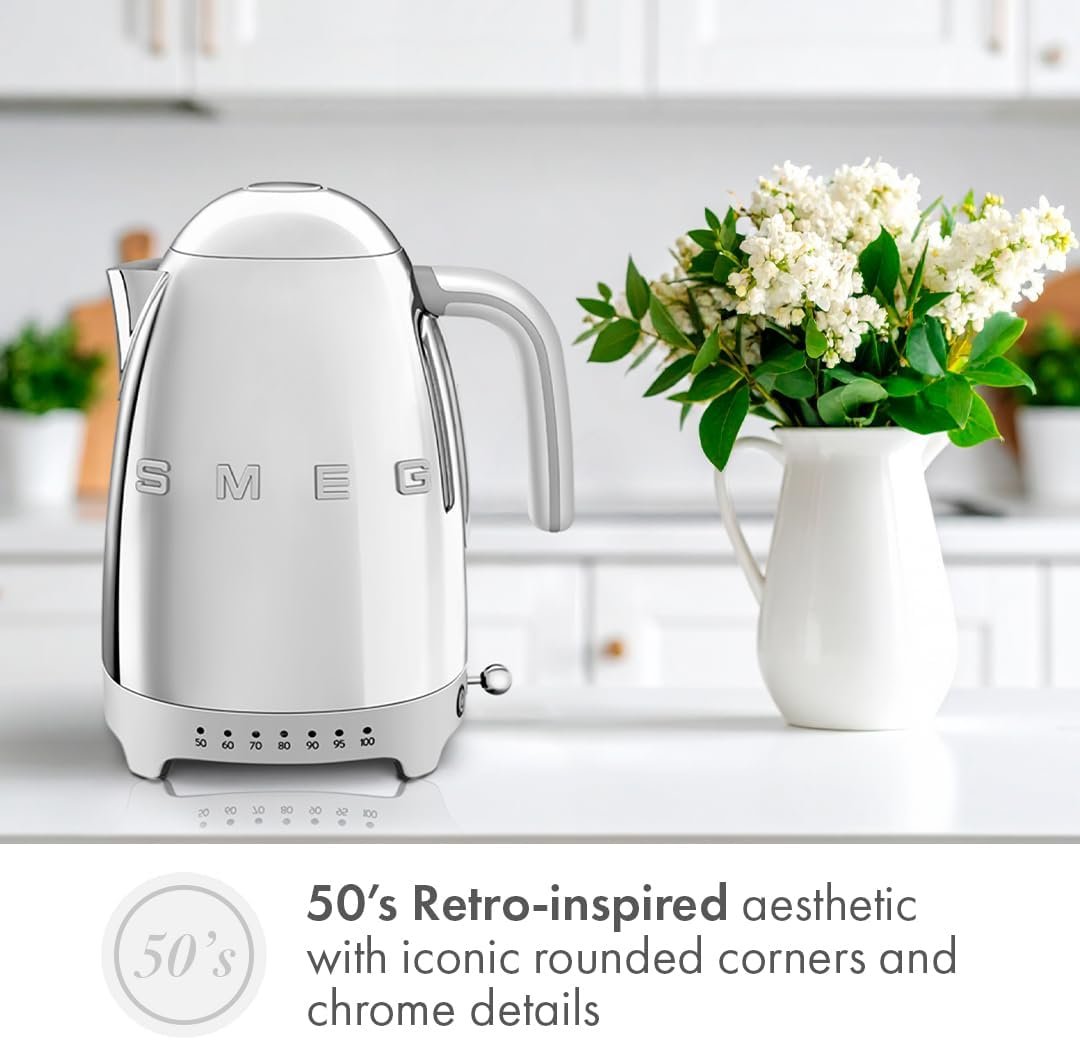 SMEG 7-Cup Variable Temperature Electric Kettle – Retro Style Aesthetic with Advanced Technology – Stainless Steel, 1400W, 120V, 360° Swivel Base, Keep Warm Function (Silver)