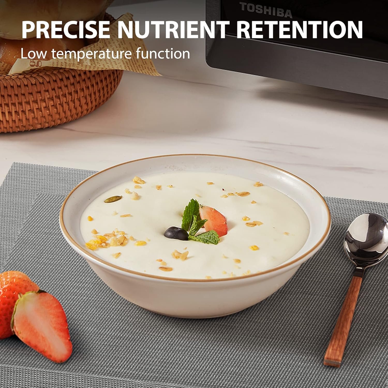 8-in-1 Multifuntional Microwave One microwave with multi-functions of microwave, air fry, bake(convection), broil (grill), combi., low temp., odor removal, defrost can fulfill more usages.