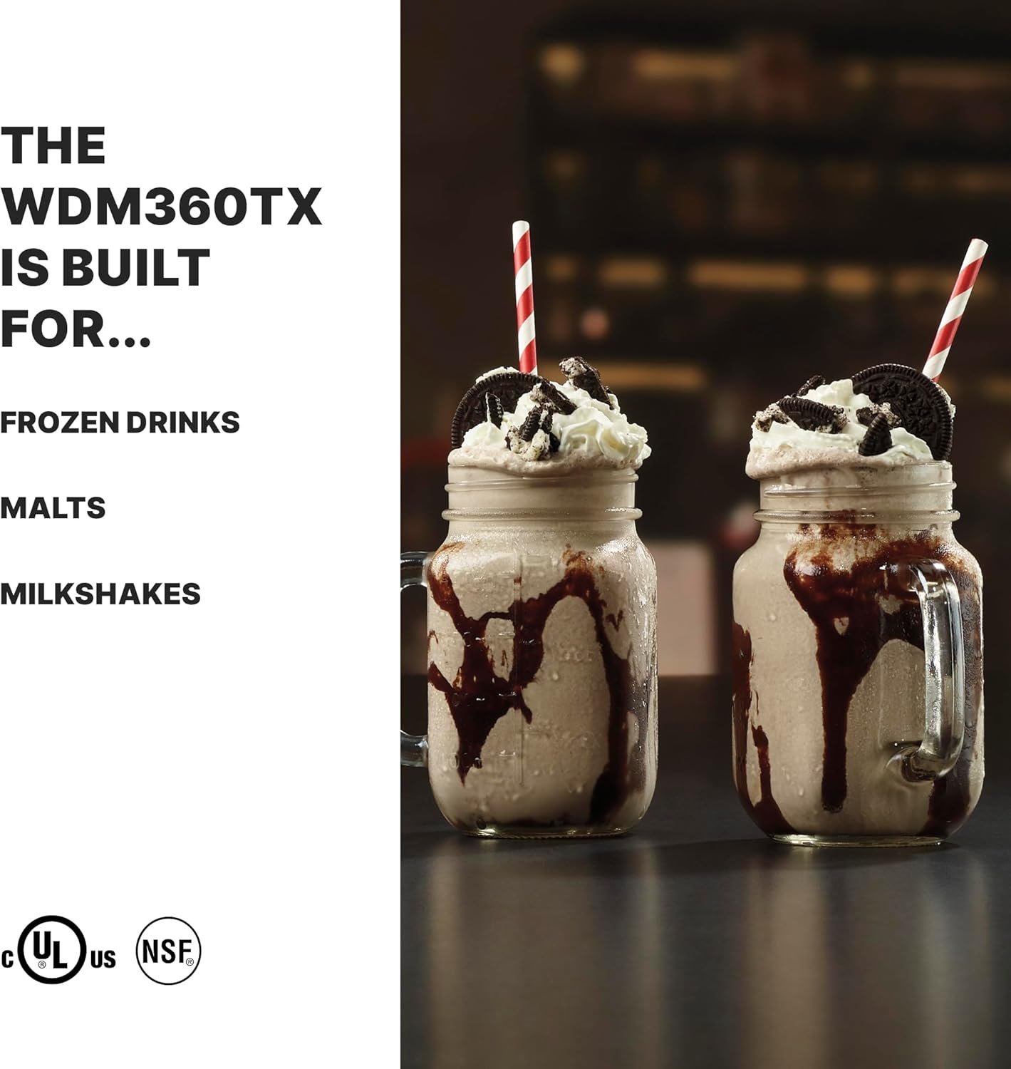 Mix perfect shakes, one, two or three at a time, with the Waring® WDM360TX Heavy-Duty Triple-Spindle Drink Mixer with Timer. Automatic shutoff lets you attend to other tasks, while three independent, 1 HP motors and ultra-aggressive agitators power through the coldest, hardest ice creams. Increased cup clearance helps you avoid spills while making creamy milkshakes or other frozen drinks.