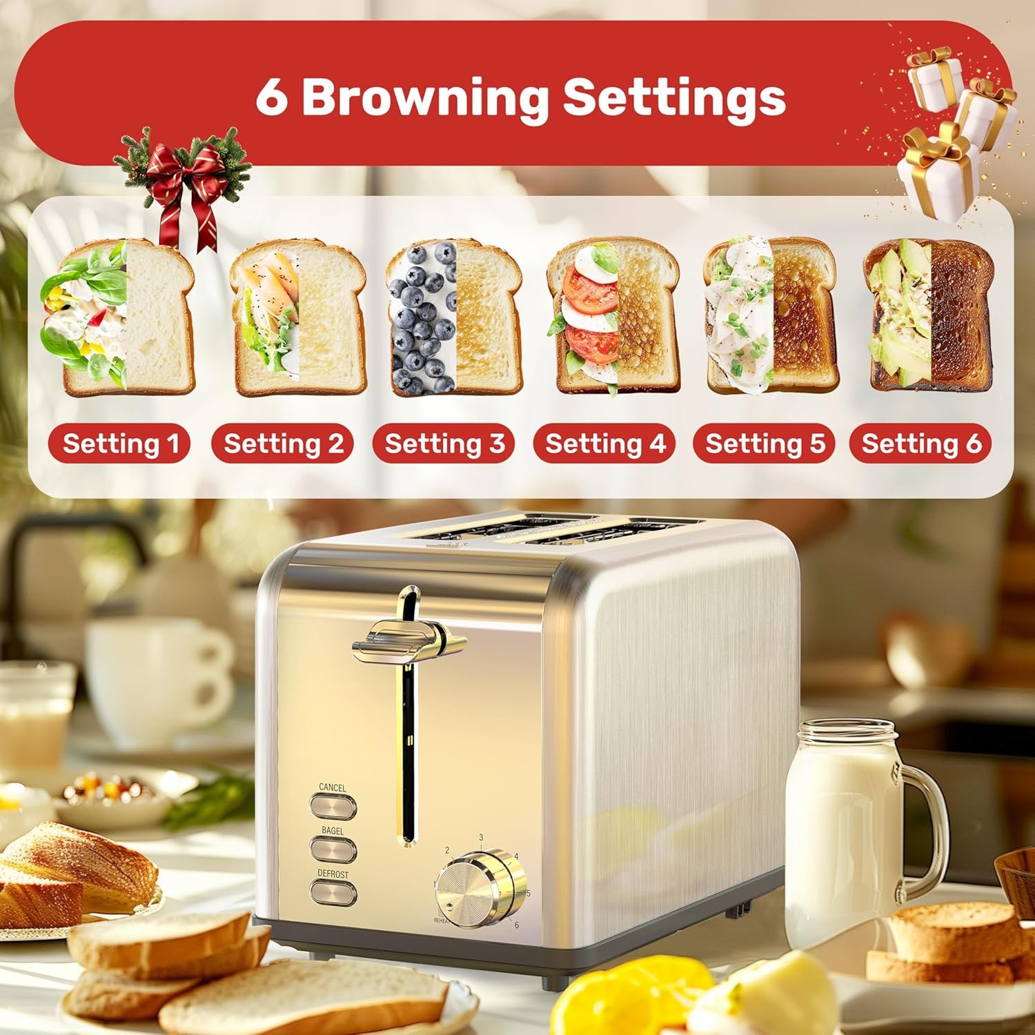 Upgraded design: Our toaster has upgraded the basic functions and has 6 shade settings, so you can take control of your toasting level and enjoy your toast exactly how you like it